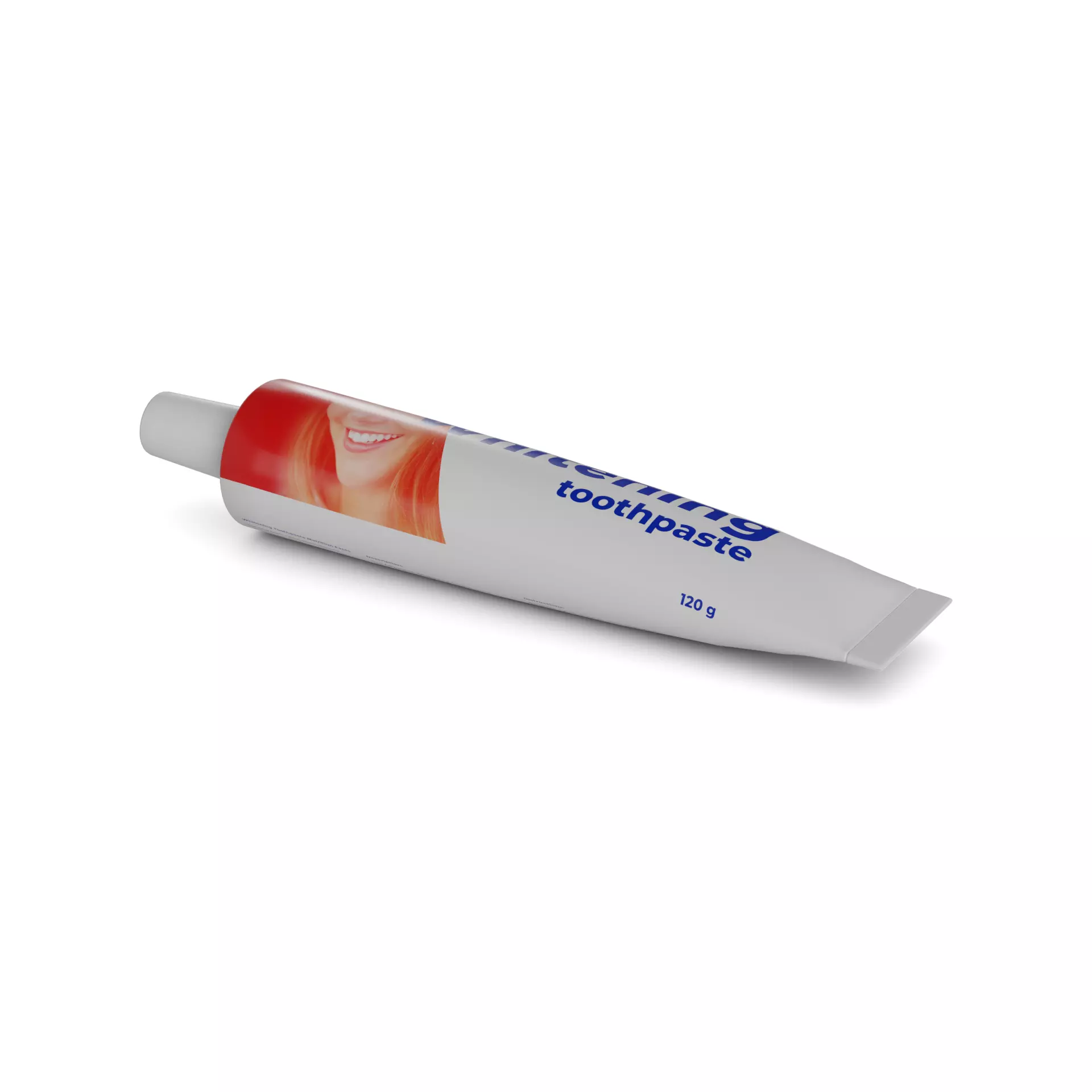 Toothpaste: Get a dazzling smile with this whitening toothpaste. Packaged in a sleek silver tube, this toothpaste features a bold red and white color scheme. The packaging includes a graphic of a shining white tooth, emphasizing the product's whitening properties. With a refreshing mint flavor, this toothpaste will leave your breath fresh and your teeth sparkling. The tube contains 120g of toothpaste, ensuring long-lasting use.