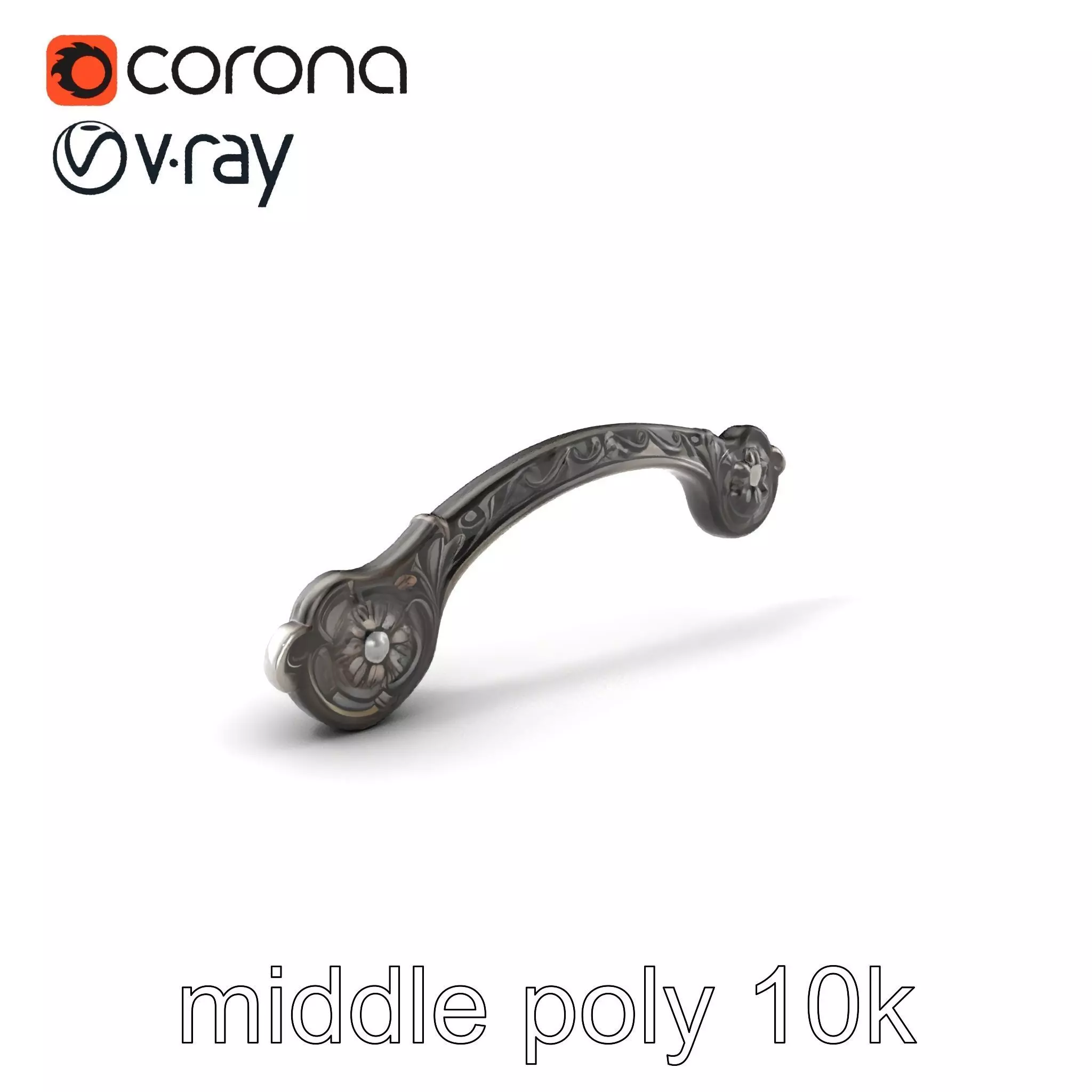 Each model has 3 levels of detail: low-poly, middle-poly, and high-poly, which allows for the use of this model in production rendering(such as 3ds max, Maya,Cinema4d, Blender, Vray/Corona/Cycles and all other), game engines (Unity and Unreal compatible), and interactive presentations, providing a choice of detail based on the LOD System principle. This vintage iron handle model is perfect for historical simulation projects, antique-themed games, or period piece renderings, showcasing the artistry in metalwork with its intricate engravings. The model's textures are PBR, Diffuse, NormalMap, and reflection/roughness/metallic, suitable for any modern rendering engine. All models accurately unwrapped and have no overlapping UV. All textures are 4096*4096 in size. If you found this model helpful, please like and leave a comment.