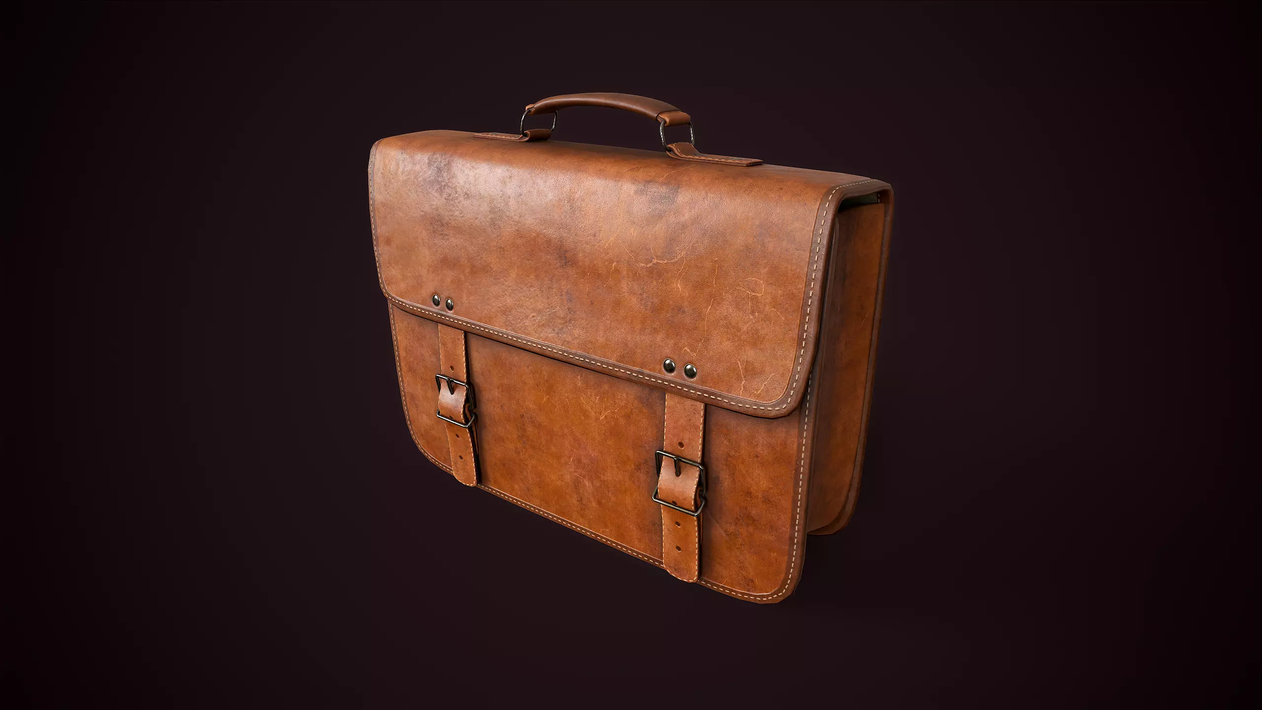 A 3D model of a vintage leather briefcase designed for a 1930s setting.