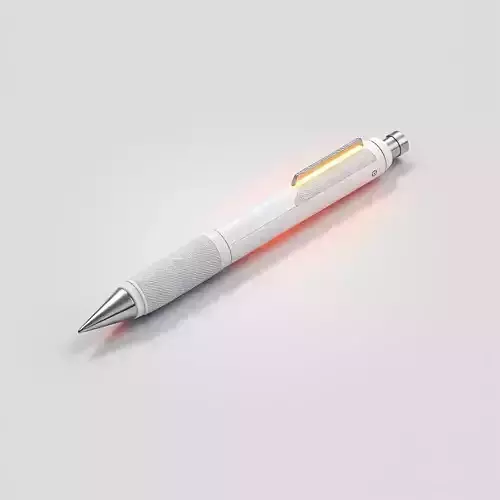 This is a meticulously crafted 3D model of a contemporary stylus or smart pen, designed with a clean, minimalist aesthetic. The model features a sleek white body complemented by elegant metallic accents and a finely textured grip area, offering a realistic tactile appearance. A striking illuminated strip runs along the pen's side, adding a distinctive high-tech touch that makes it stand out. This versatile asset is perfect for a wide range of applications, including sophisticated product visualizations, detailed architectural renderings of modern office or tech-centric environments, and as an interactive prop in cutting-edge augmented reality (AR) and virtual reality (VR) experiences. Its precise geometry and clean topology ensure excellent performance for both high-quality static renders and real-time interactive scenes. The model is UV unwrapped and ready for PBR texturing, allowing for realistic material representation under various lighting conditions. It supports multiple widely used file formats such as GLB, OBJ, FBX, USD, DAE, ABC, and PLY, ensuring broad compatibility across different 3D software and game engines. Optimized for real-time applications like games and AR/VR, it is also highly suitable for high-resolution static renderings, offering exceptional visual fidelity and flexibility for any digital art or professional project.