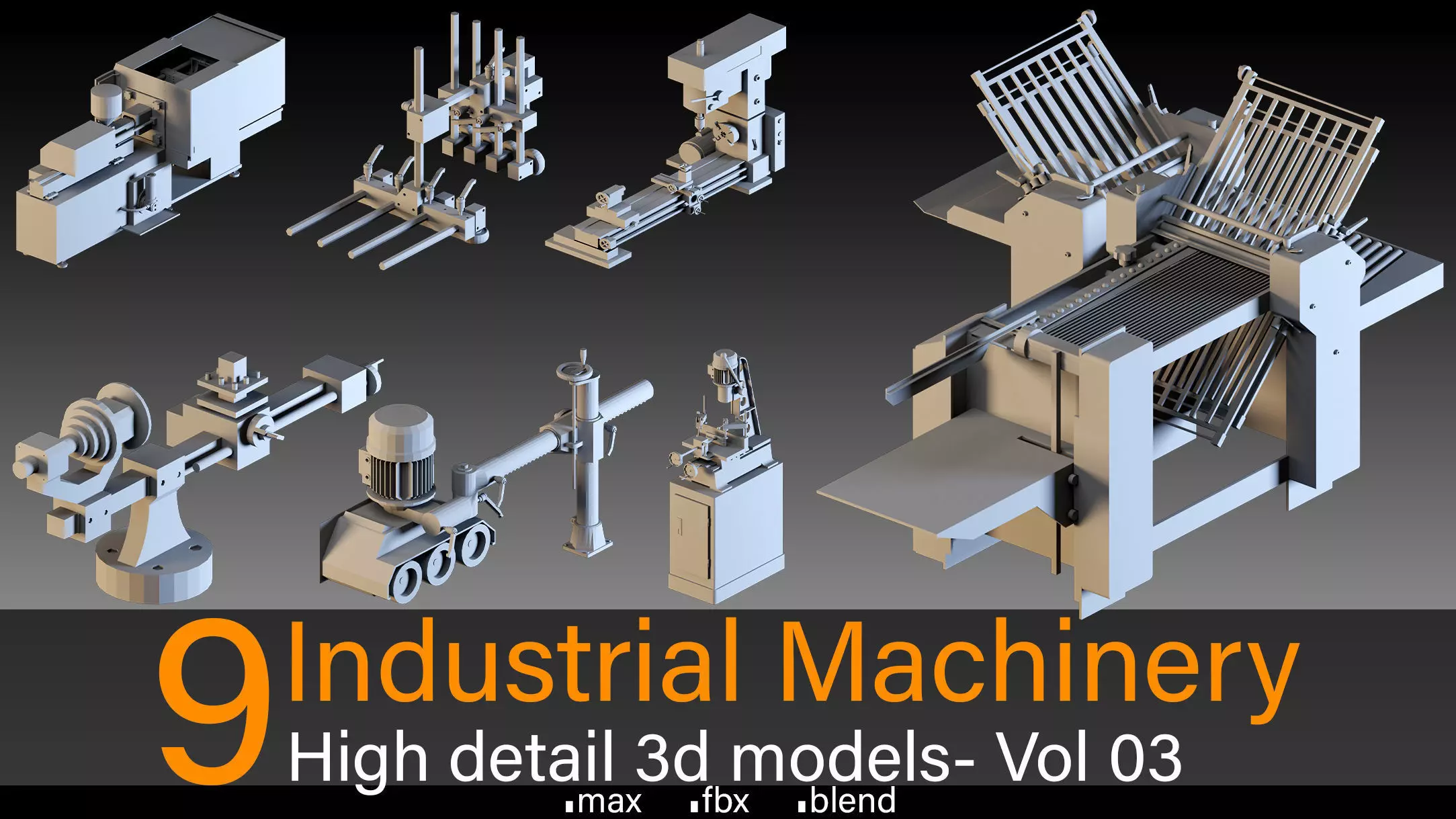 This product includes 9- Industrial machinery- High detail 3d models in 3 formats