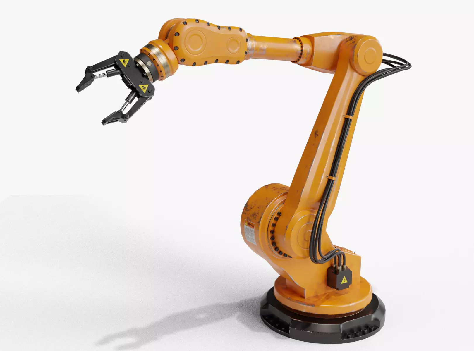 This is a 3d model of an industrial robot arm which stands out with a clear topology, detailed textures, and a full rig. Modelled, rigged and textured in blender 2.9