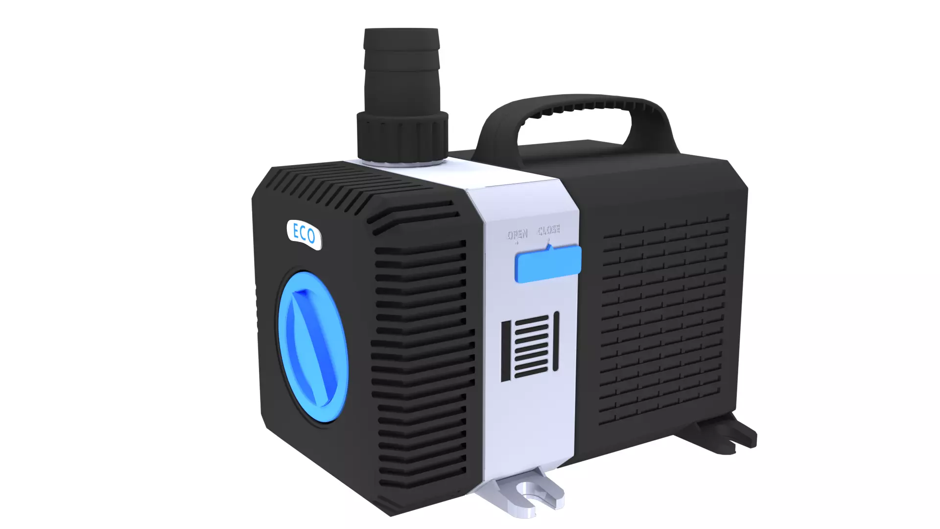 This is a realistic 3D model of the AquaOne CTP Pond and Aquarium Water Pump, designed for use in architectural visualizations, product animations, simulations, and interactive applications.