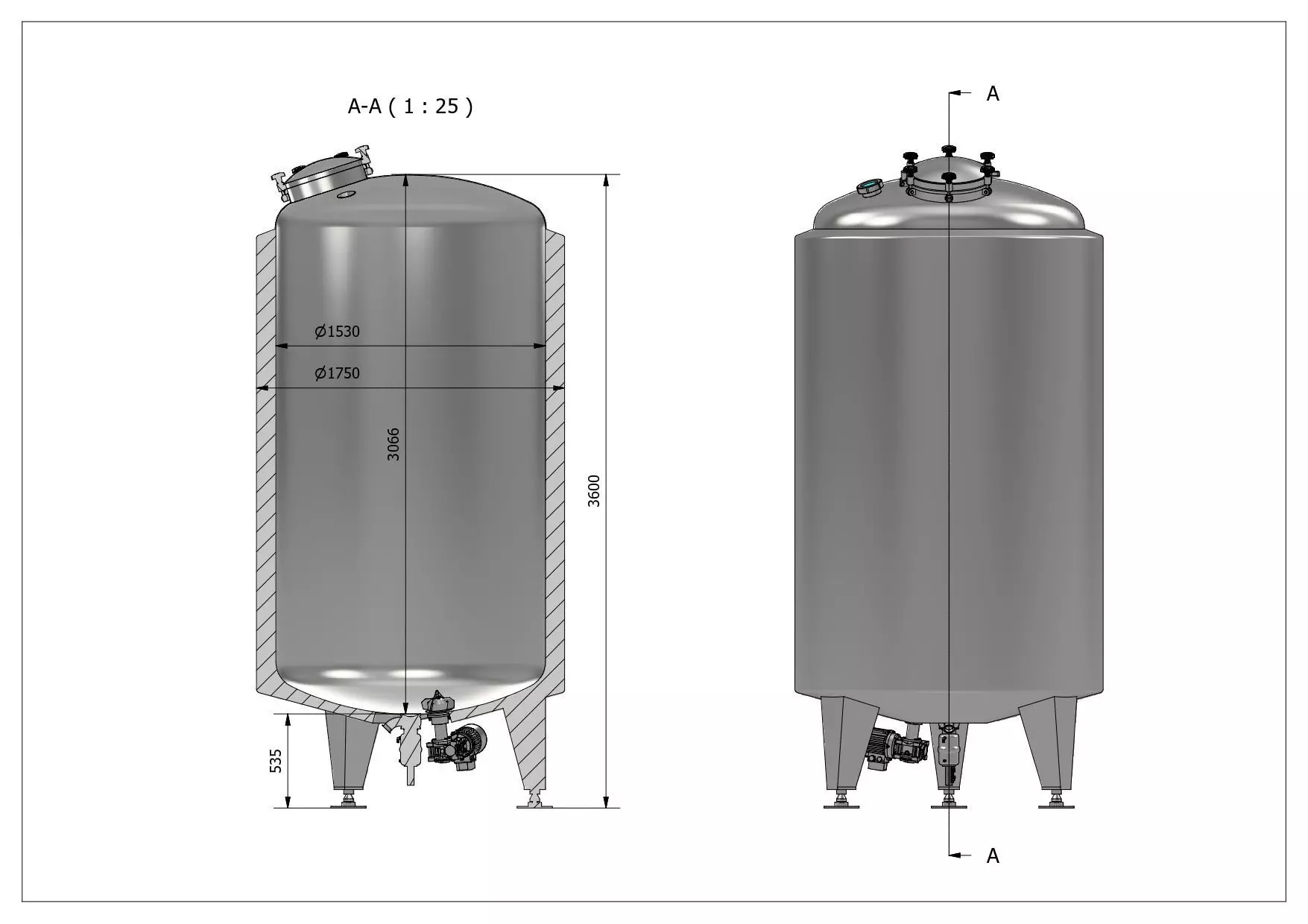 High-quality 3D model of an ASME BPE compliant sanitary pressure vessel, designed for pharmaceutical, biotechnology, and food processing industries. The model represents a vertical cylindrical vessel with a dished top head, zero dead leg bottom drain valve. This model is suitable for industrial visualization, engineering presentations, factory layout planning, simulation environments, and educational use.