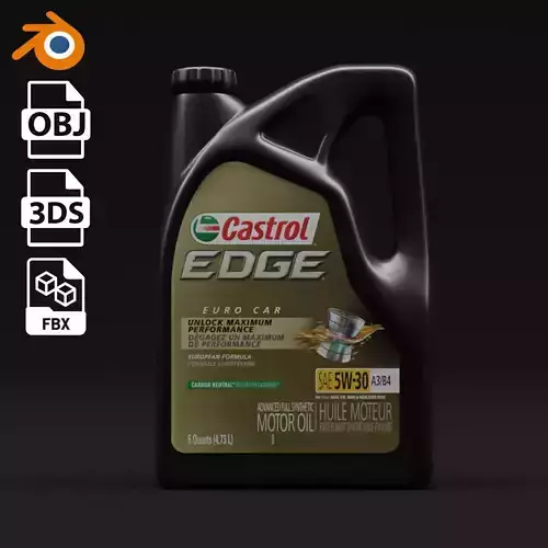 Automotive oil container in high definition that has a removable lid and geometry-free interior. It has a black texture simulating plastic and a real label on both the front and the back.