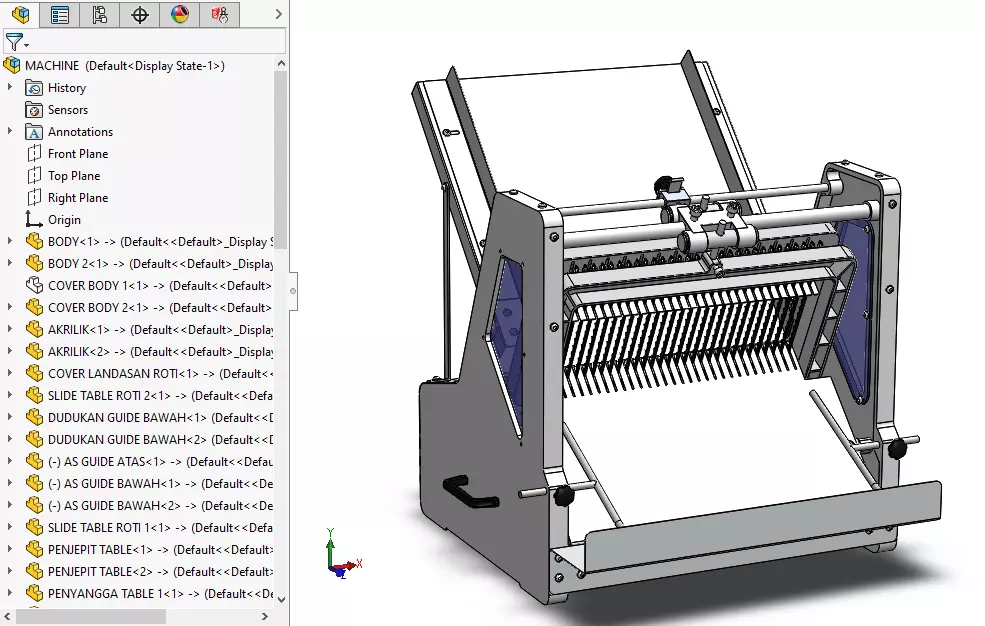 The model has material settings that define how surfaces look (color, shine, transparency, etc.).