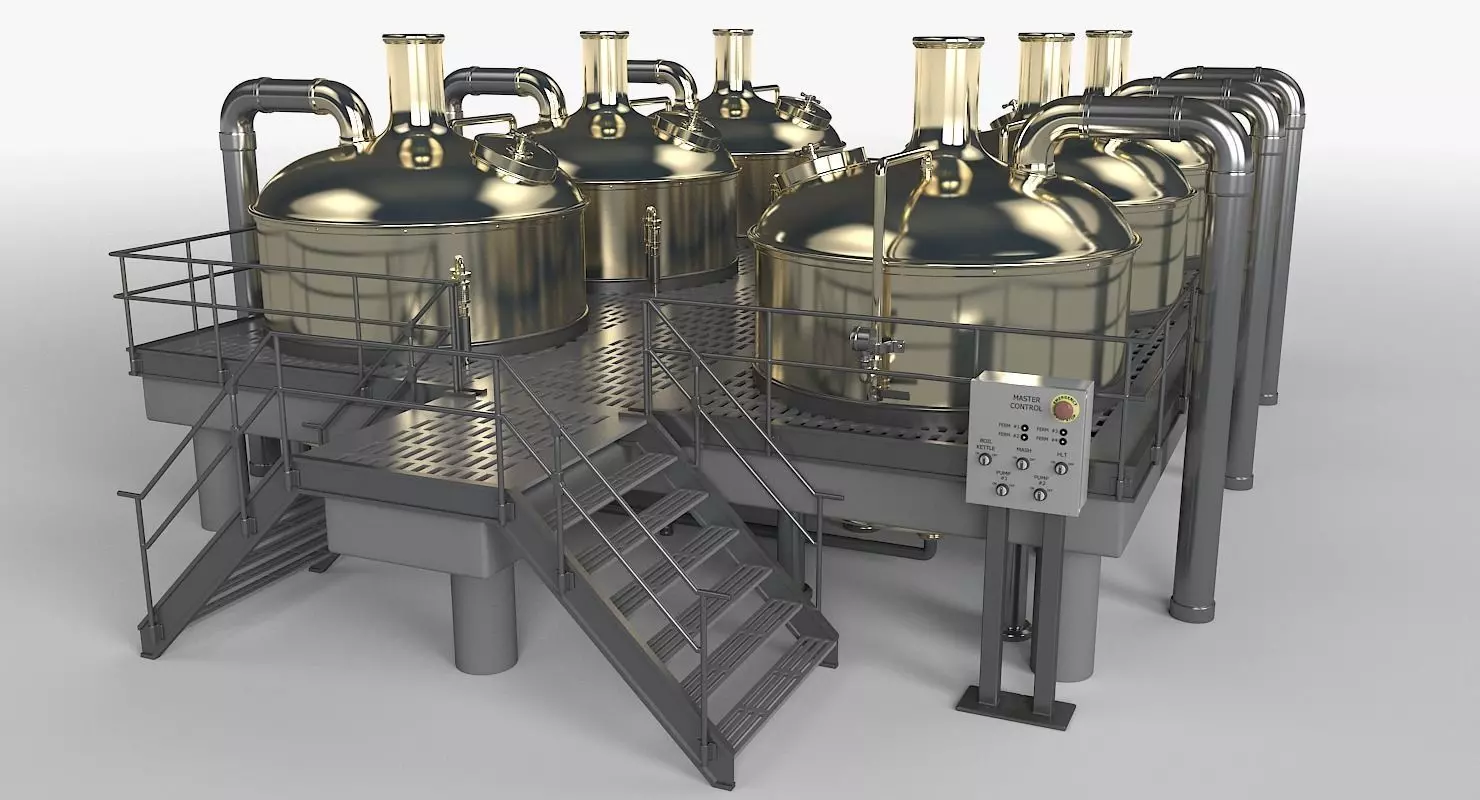 DESCRIPTION-A highly detailed and photo-realistic model of a Brewery Scene. This model was created with great care and attention to detail, modeled after exact brewery setup and schematics.