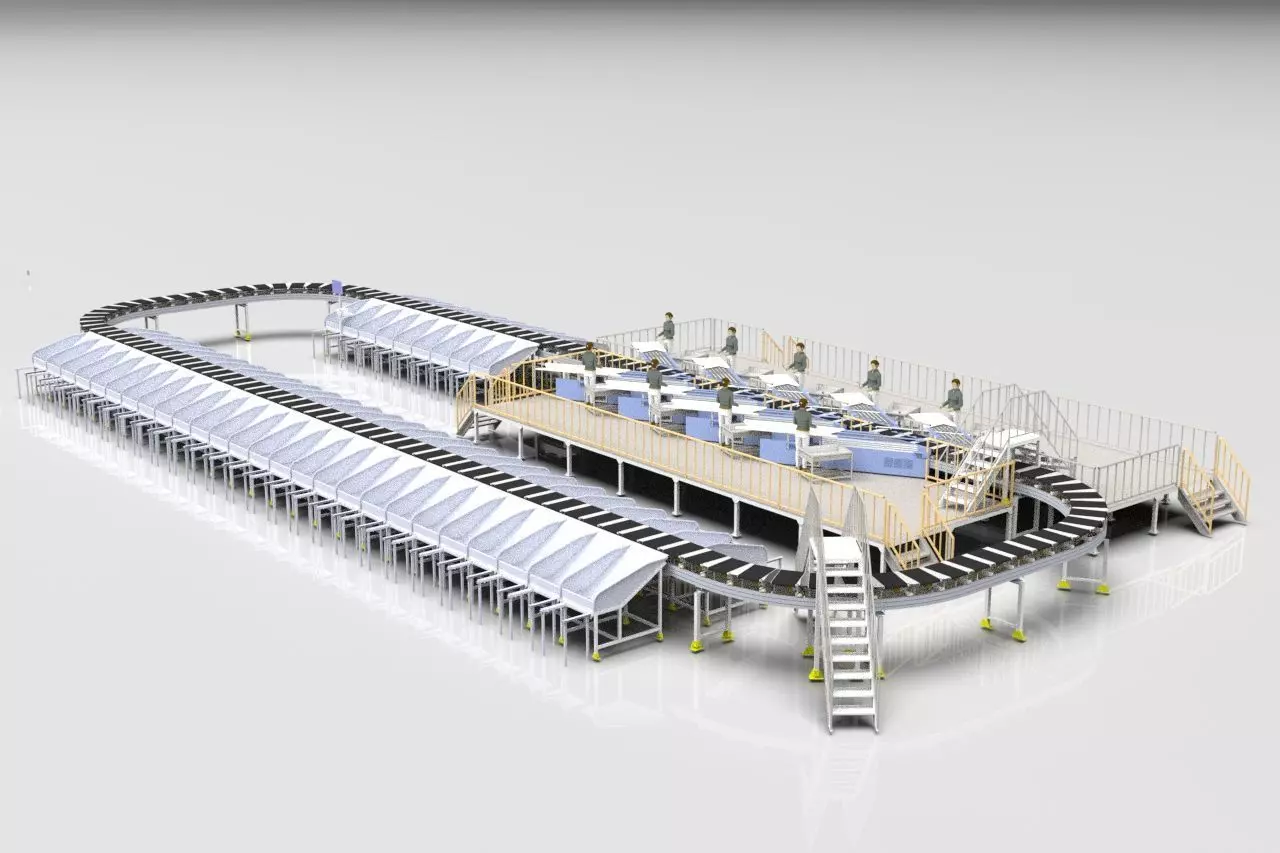 The working principle is a closed conveying and sorting system composed of a group of trolleys. The trolley moves along the track in a loop, and the surface belt of the trolley unloads in a direction perpendicular to the loop. The package is accurately transported to the trolley via the induction table. After being scanned by the barcode system, the barcode (barcode or QR code, etc.) posted on the package is identified, and the packages with different destinations are unloaded at different outlets according to the barcode information. ”