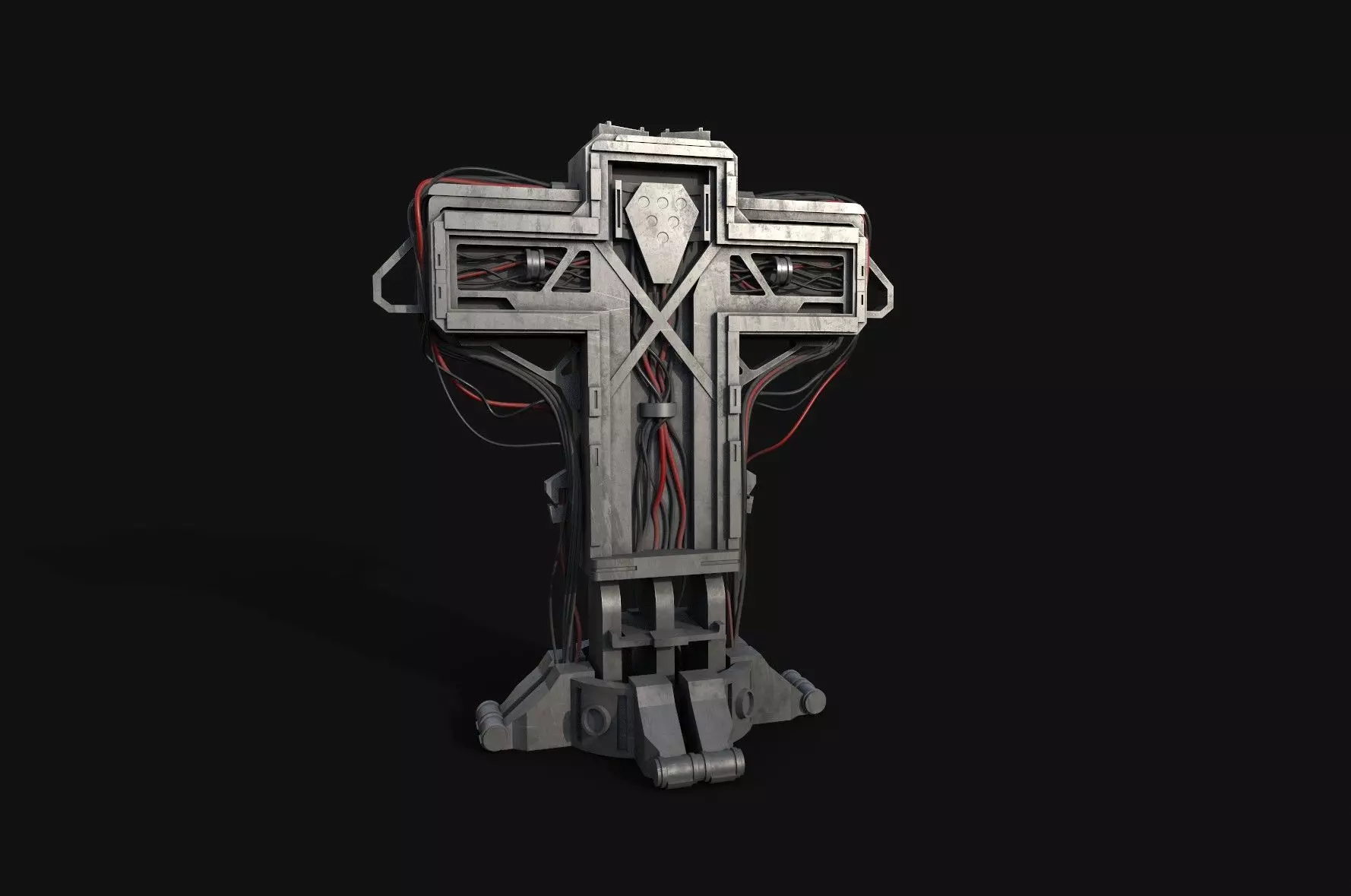 This Cyberpunk Crucifix is a highly detailed and optimized 3D model, perfect for use in futuristic, sci-fi, dystopian or religious-themed environments. Designed with a gritty and metallic aesthetic, it blends sacred symbolism with cyberpunk elements like cables, neon accents, and industrial materials. Ideal for games, cinematics, or concept art.