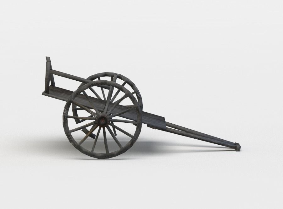 Damaged hay wagon Low-poly 3D model