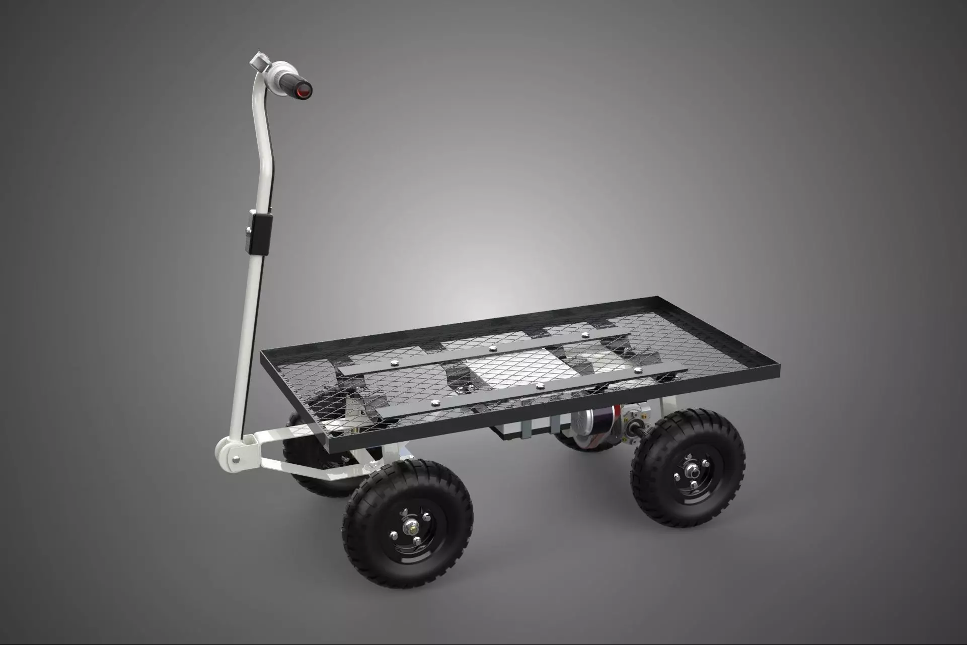 KEYWORDS: Electric, Trolley, Cart, Wagon, Truck, Industrial, Warehouse, Logistics, Flatbed, Mesh, Steel, Grid, Motorized, Transport, Deck, Loading, Handling, Battery, Storage, Cargo