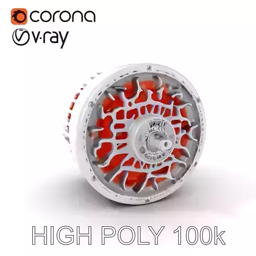 The electric motor is modeled with precision, focusing on accurate representation of key components such as the housing, rotor, and stator coils. PBR textures include Diffuse, Normal Map, and reflection/roughness/metallic maps, all at a high resolution of 4096x4096, ensuring the model looks great in any lighting condition without overlapping UV maps.