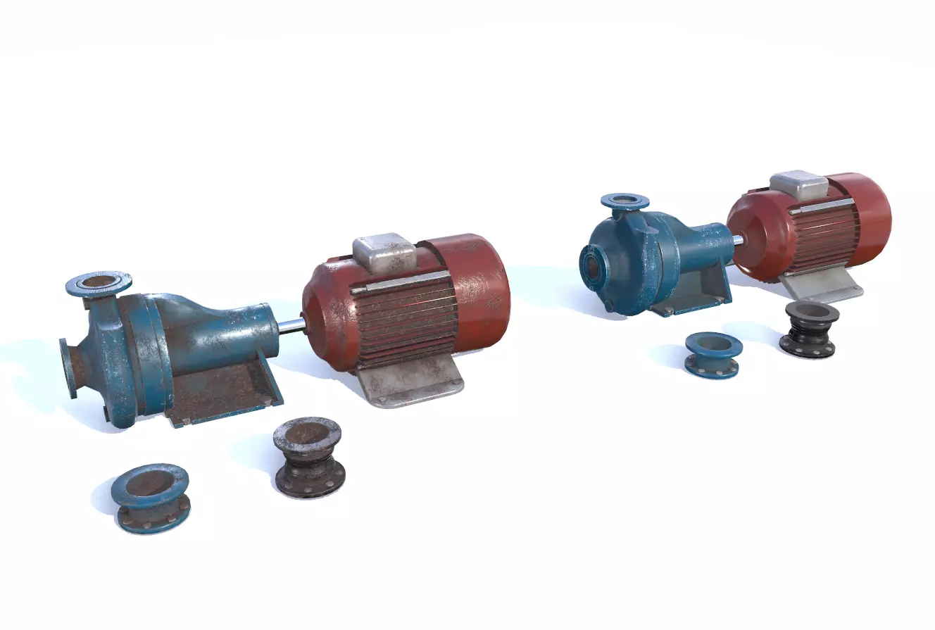 Electric motor pump based in real models consisting in 3 objects, pump and 2 small pipes. Comes with 4096px PBR textures: AO, Albedo, Normal, Roughness, Metalness.