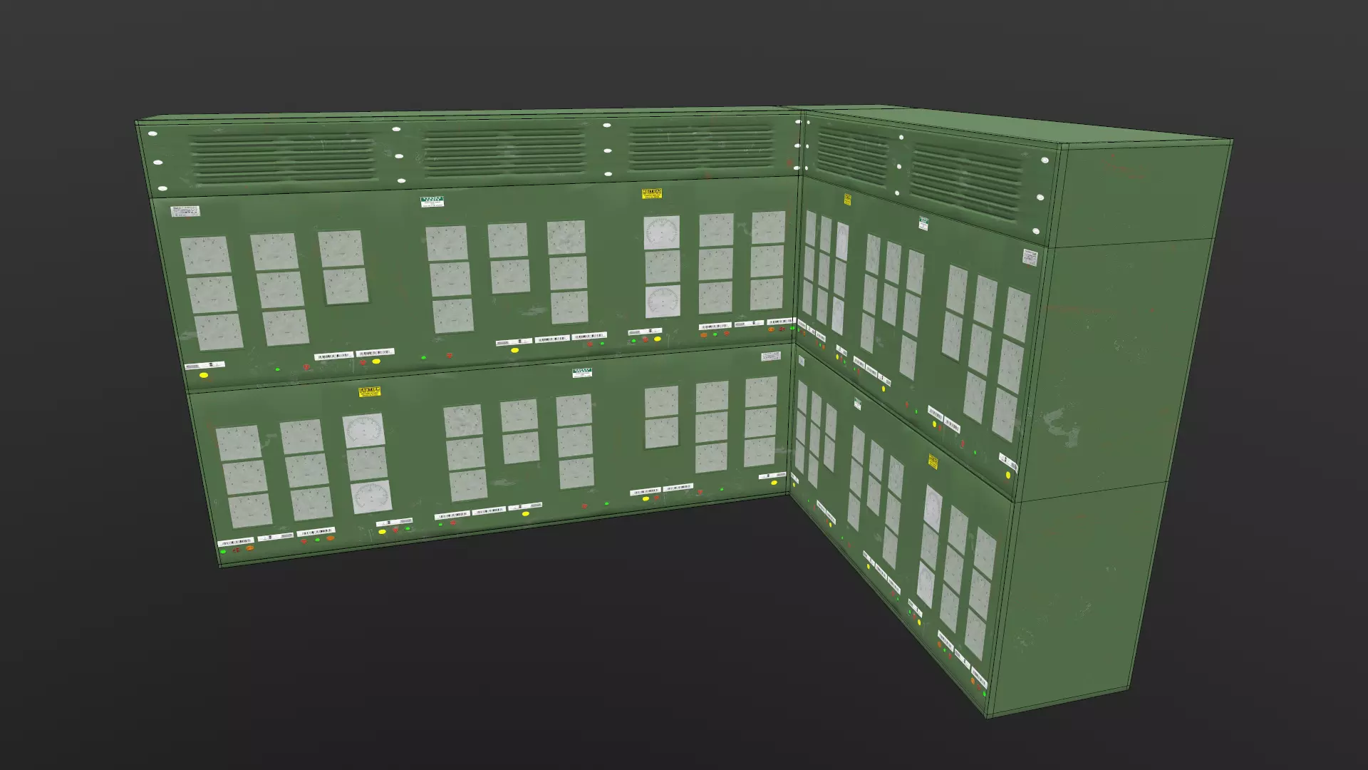 Model of Industrial Factory Control Panel .Model is created from 1 material with standard PBR textures. More detail such as buttons, vents and embedded electronics are all baked in textures.