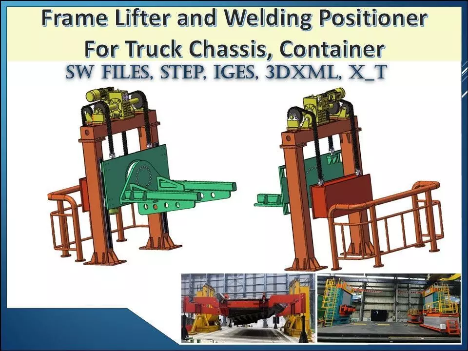 High-detail Four Pole Frame Lifter and Welding Positioner 3D CAD Model designed for heavy-duty fabrication, welding, and assembly operations. This model represents an industrial lifting and positioning system that enables safe, precise orientation of large frames during welding.Key Features & Benefits• Four-pole synchronized lifting mechanism for stable load handling• Integrated welding positioner design for accurate frame orientation• Suitable for heavy frames, structures, and welded assemblies• Improves welding access, accuracy, and operator safety• Industrial-grade CAD detailing, ideal for:o Fabrication shop layout planningo Welding automation and fixture conceptso Equipment visualization & sales presentationso Process simulation and training• Clean, modular CAD structure for easy customization and scaling• Ready-to-use engineering asset reducing design time