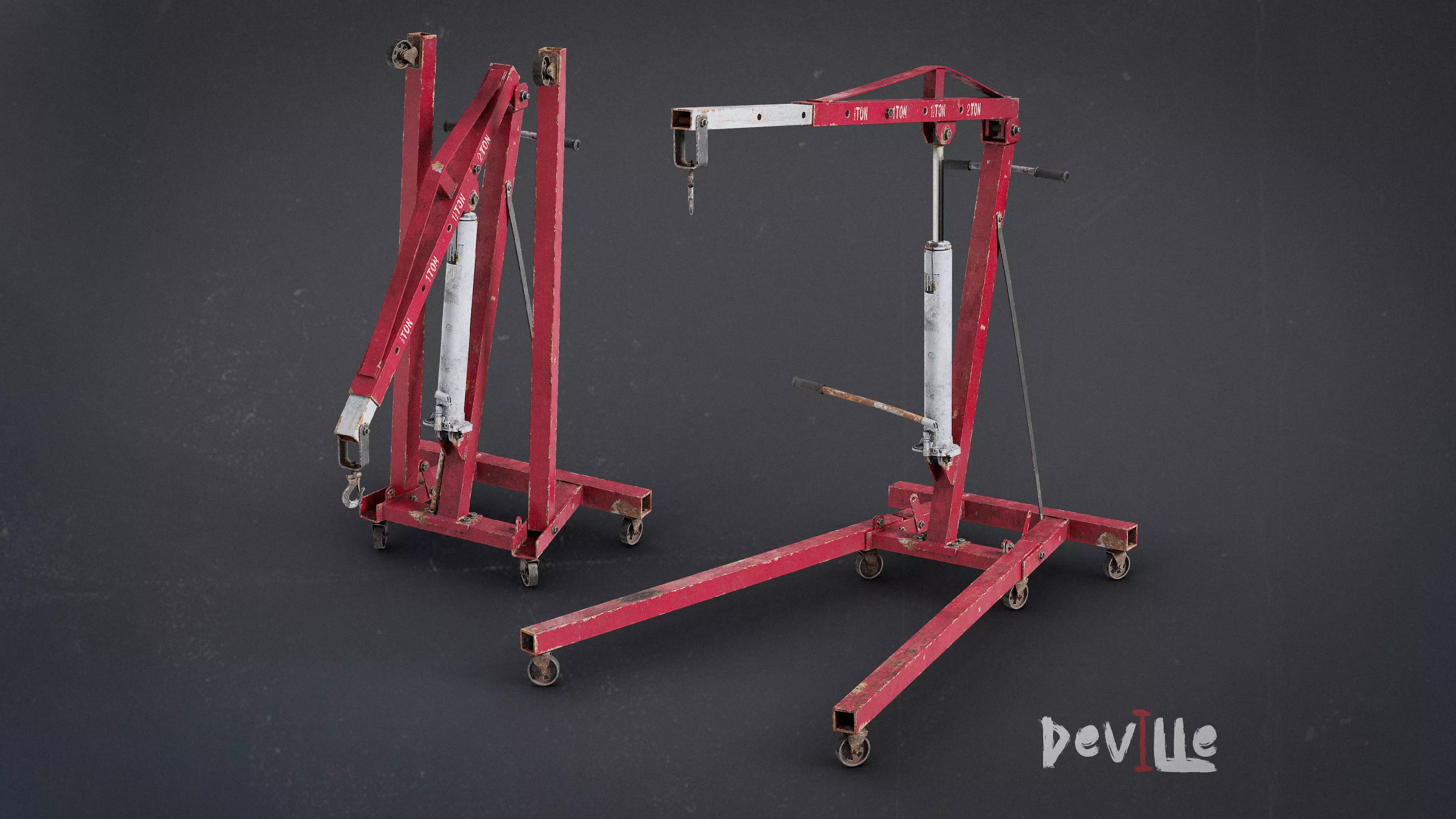 Car Engine Crane - Worn Hydraulic Hoist -3 meshes - Game ready Low-poly 3D model