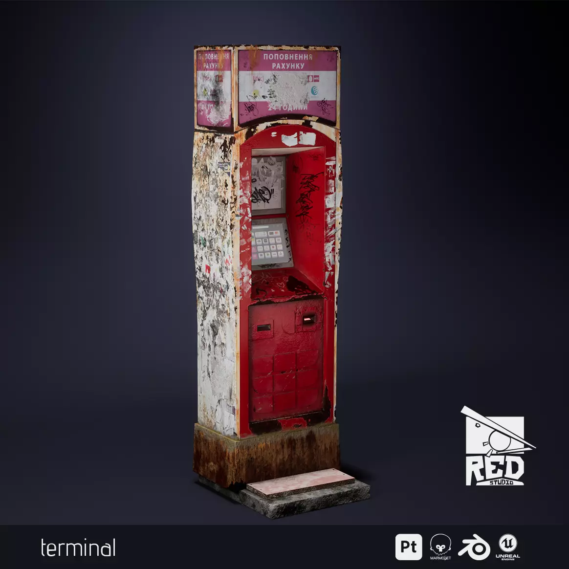 Realistic 3D model of a service terminal optimized for Unity and Unreal Engine. Comes with PBR textures and several formats. What is included:Low-Poly 3D Model (340 tris)PBR Textures (2K, 4K) - BaseColor, Roughness, Normal, AO, MetallicFormats: FBX, OBJ, Blend, STL,Ready for: Unity, Unreal Engine