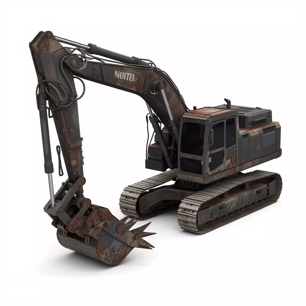The model is professionally crafted for high visual impact in horror-survival games, cinematic dark fantasy renders, or supernatural industrial environments. Every texture—from the oxidized metal treads and grime-streaked hydraulic cylinders to the realistic dirt buildup and extensive rust—is meticulously detailed to ensure a game-ready, polished appearance. Provided on a clean, isolated white background, it is optimized for seamless integration into various 3D creative workflows and real-time engines.