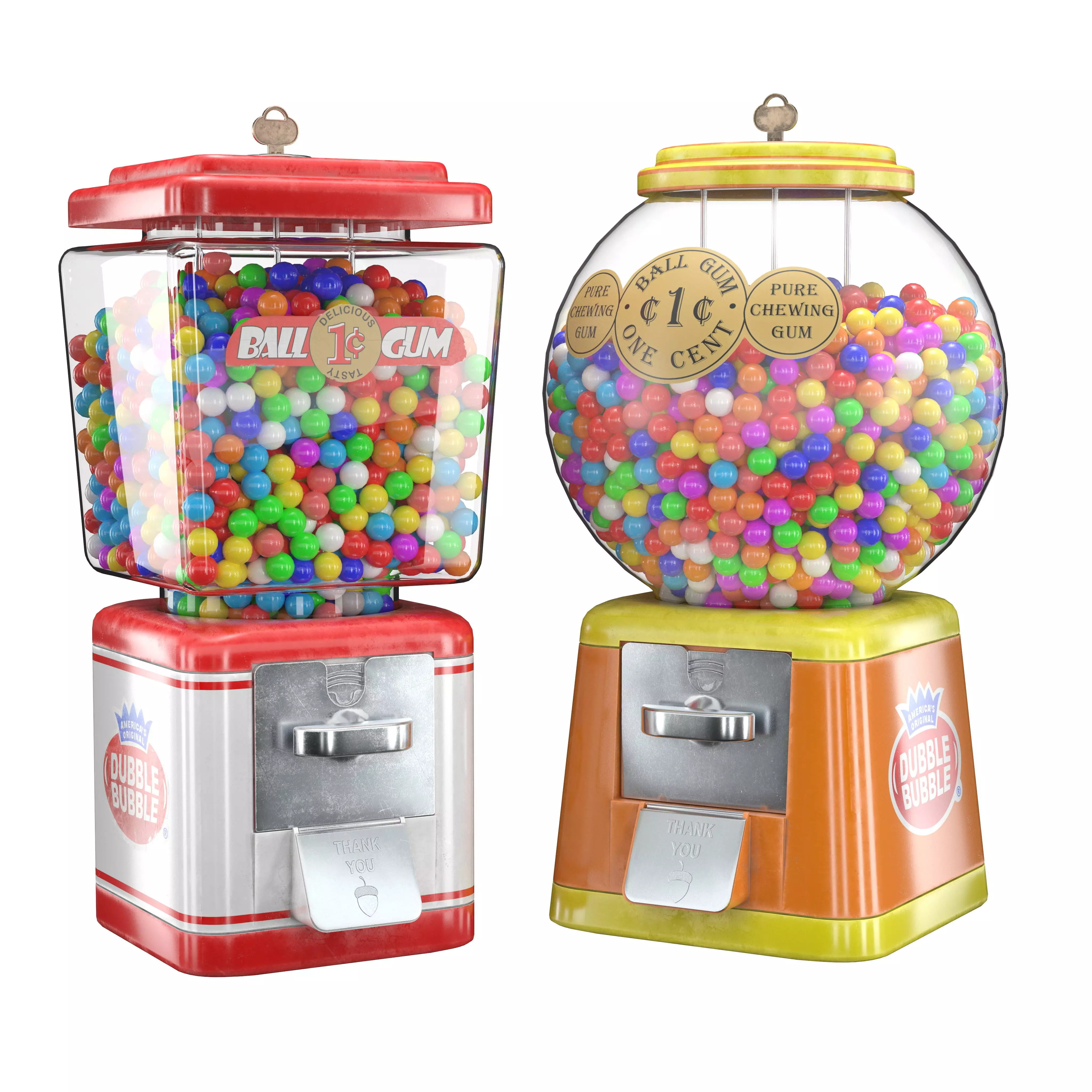 Retro gumball vending machine, from the mid-20th century, in two versions.Can be used for both close-ups and long shots.General polycount - 699574Polycount for machine #1 - 290279Polycount for machine #2 - 409295