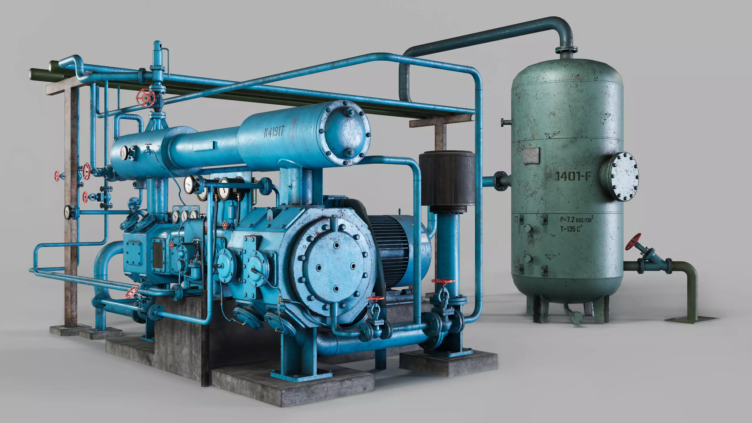 • The scene includes separator,two different types of globe valves,safety valve,ball valve,control gauges,pipes and electric motor.