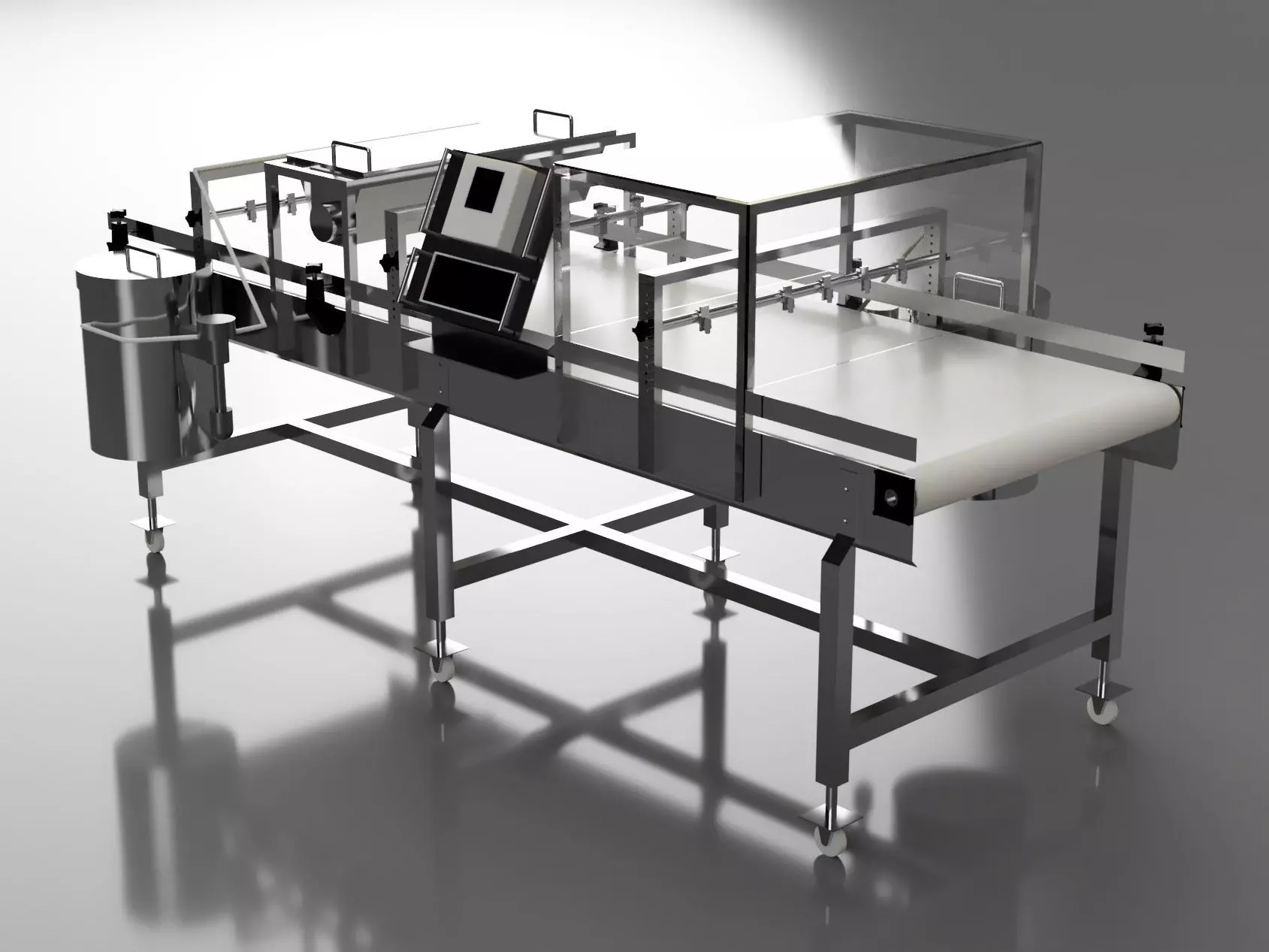 This is an illustrative 3D model of an industrial conveyor used as a target seeder for bread.