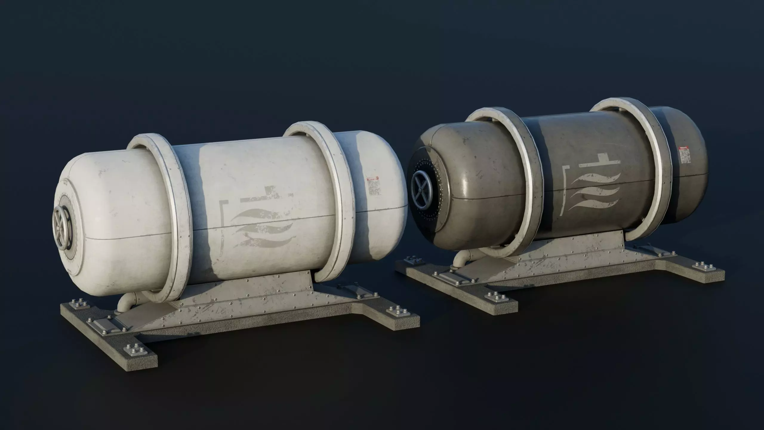 This 3D model represents an industrial roof tank system featuring one large storage units designed for ventilation or fluid processing setups. The pack includes both white and black variants. Fully optimized for real-time use with high-resolution baked textures and PBR materials, ideal for games, visualization, and industrial environment design. Part of the Roof Elements Pack.