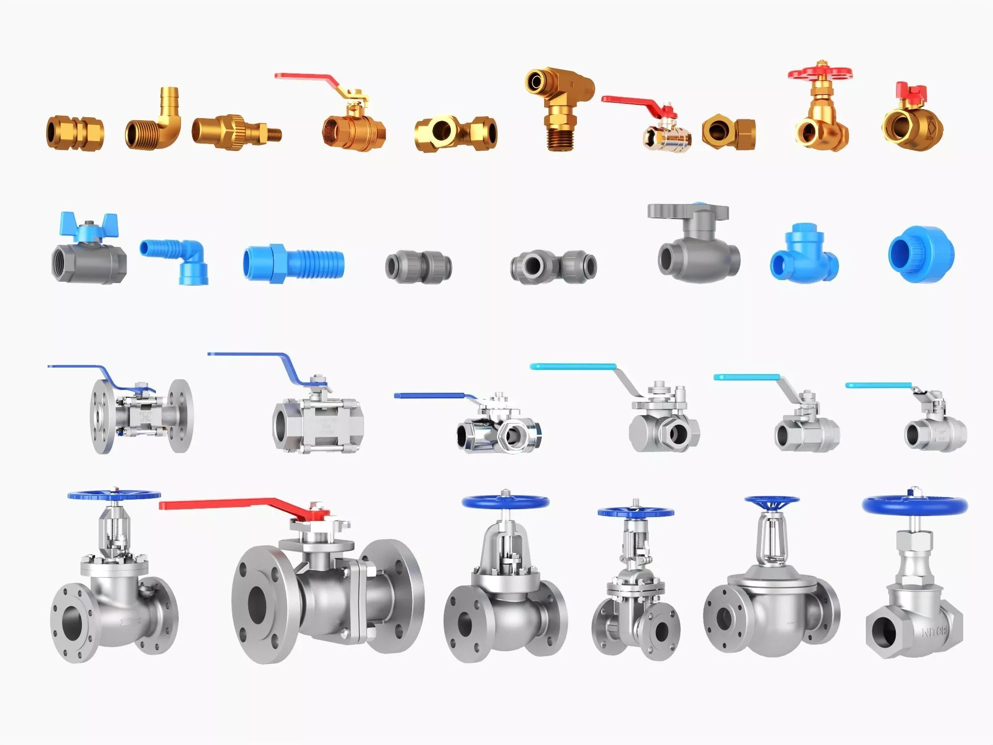 Professional high-quality 3D Mega Collection of Industrial Valves and Pipe Fittings meticulously crafted for complex mechanical engineering water treatment facility and chemical plant visualization projects. This comprehensive asset pack features over 25 distinct professional units including high-pressure stainless steel flange gate valves brass ball valves PVC pipe connectors check valves and various hydraulic fittings with realistic metallic and polymer finishes.