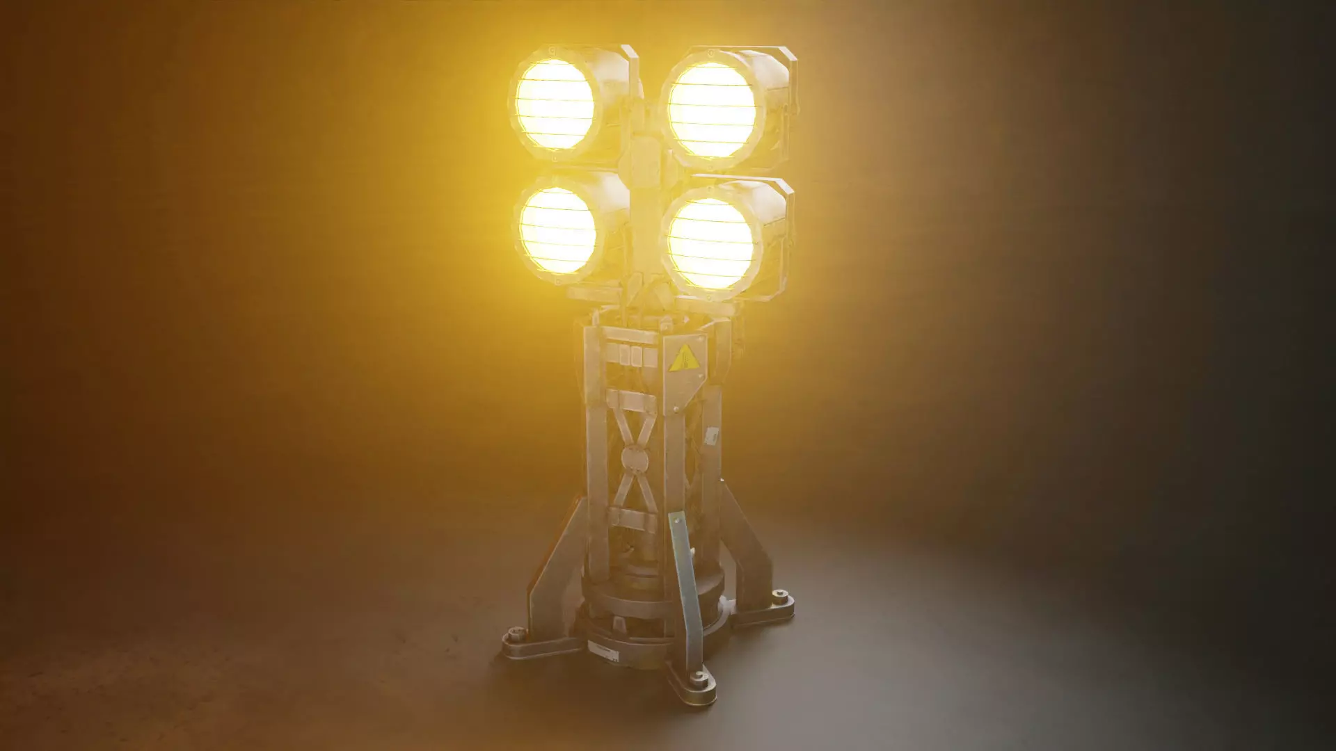 A high-detail Flood/Spot Light Tower inspired by industrial searchlights used in factories, hangars, and sci-fi outdoor bases. The model includes sturdy support legs, an adjustable lighting head, and mechanical detailing suitable for moody atmospheric scenes or gameplay lighting props.