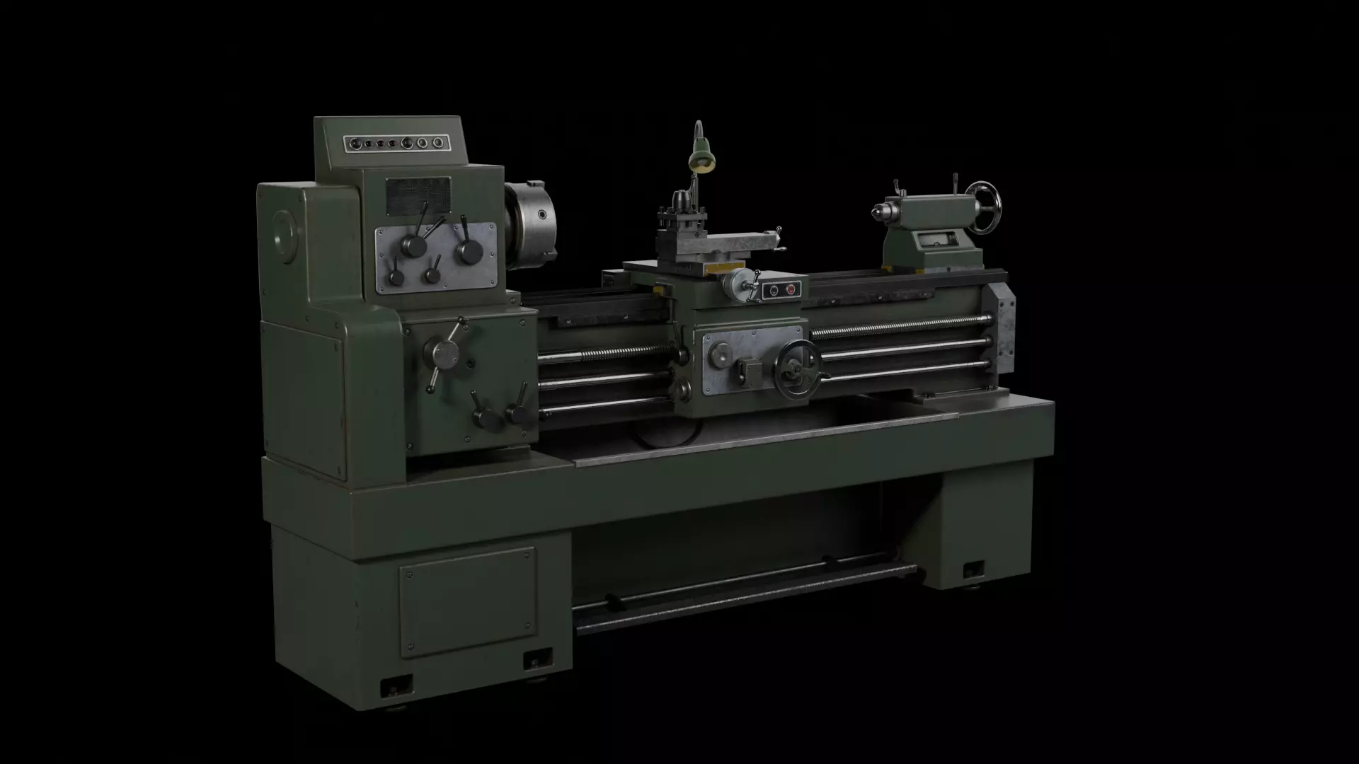 An old highly-detailed metalworking industrial Lathe inspired by a number of real-world models that can be a great addition and point of interest in your workshop or factory scene. It will perform especially greatly in a 3D game providing a secure and good-looking cover. The detalization is the most on human standing and squatting levels.