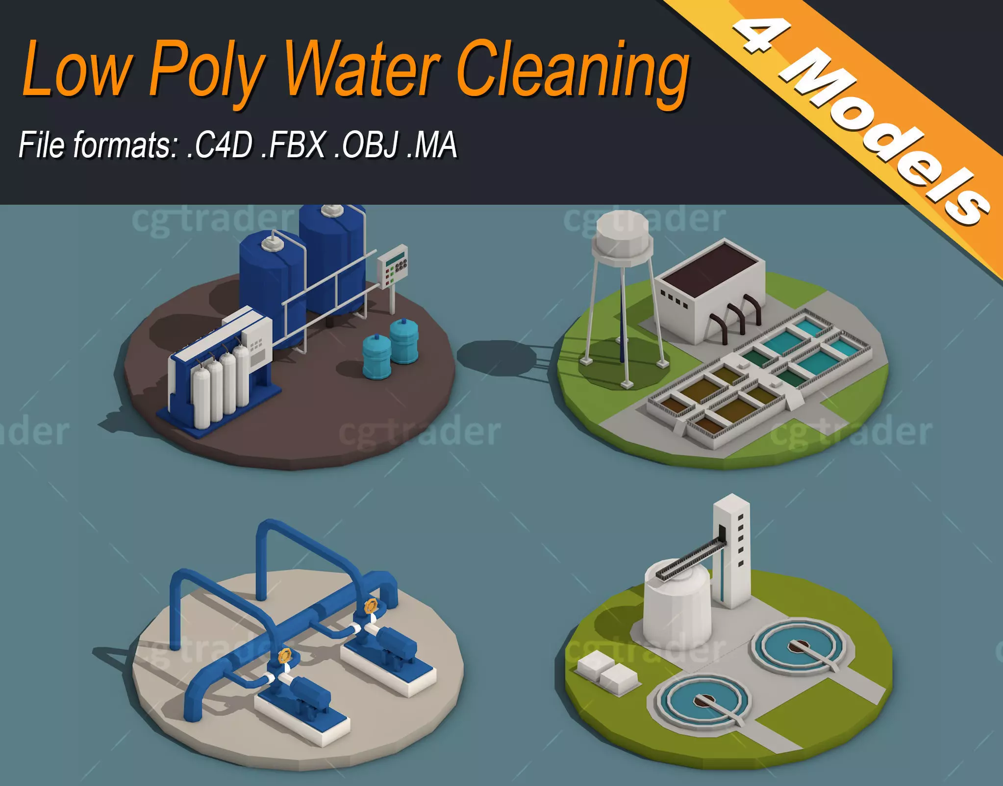 Rendering standard in Cinema 4D. Texture file size(2048*2048), You can easily adjust the color by dragging the uv. Model ready for game, render, make videos, motion graphics, inforgraphic, 3d map..e.t.c. This package contains: water treatment, sewage treatment, pumping station, purification plant. There are many other packages here: https://www.cgtrader.com/linkdo