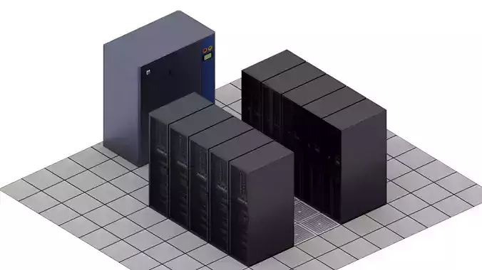 Lowpoly Data Center Server Room Visualization Scene Low-poly 3D model