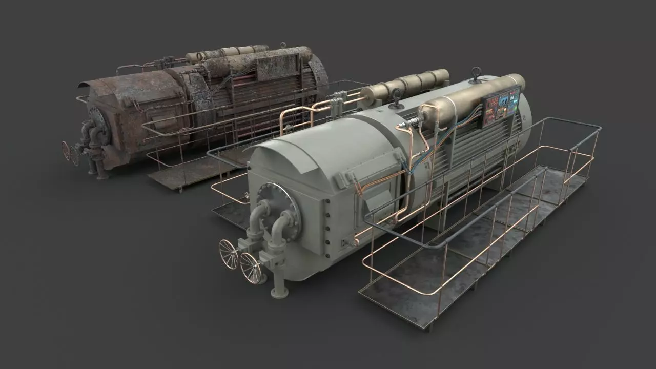 Machinery device for industrial visualizations. PBR materials. 2 textures set: regular and rusted. Corona renderer 1.7 Vray render 3.6