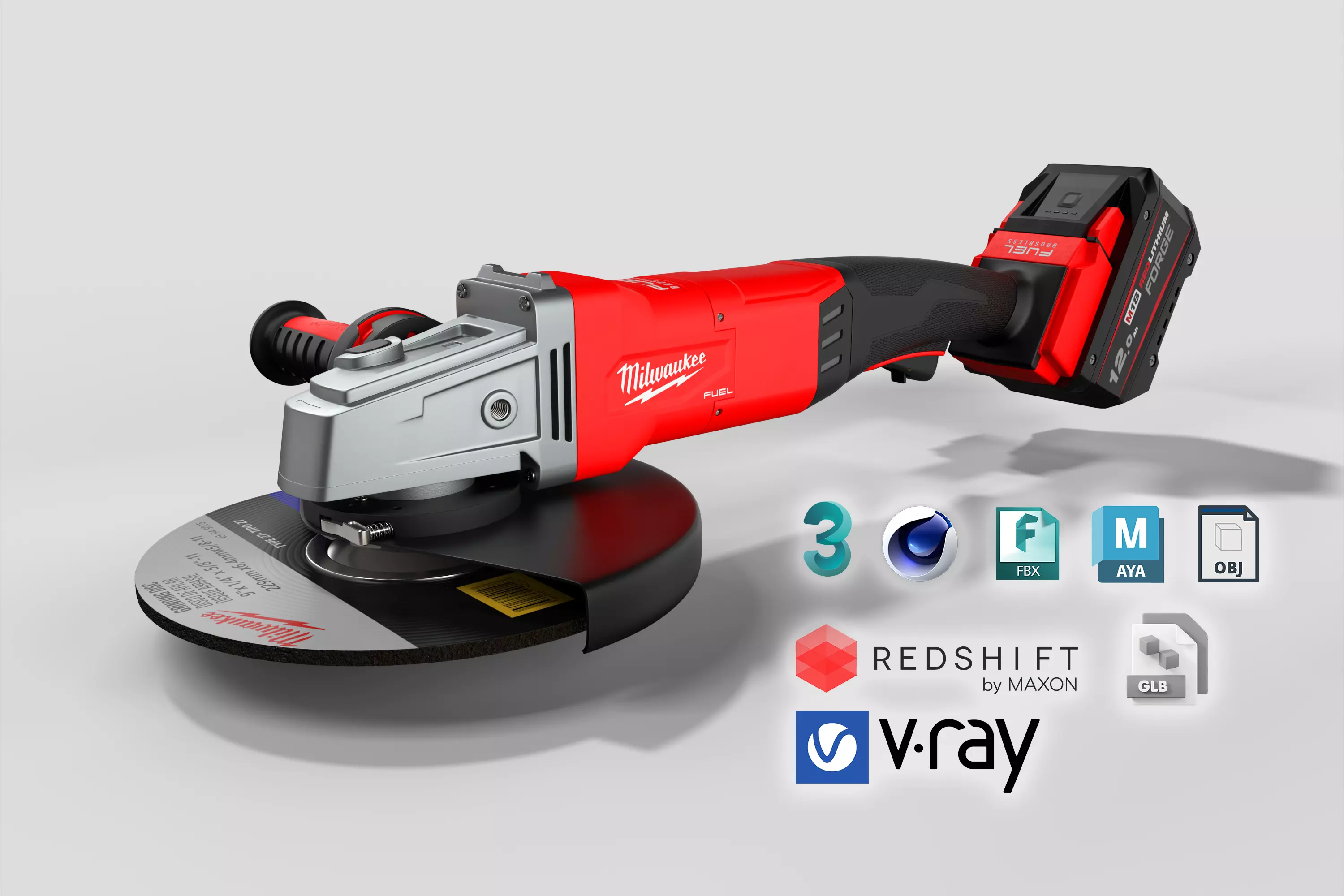 This is a MILWAUKEE 230mm Angle Grinder device modeled originally inside of Autodesk Maya 2023 and exported into 3ds Max 2022 and CINEMA 4D S24. This device is designed for professional construction, specifically grinding surfaces. The internals of the device have not been modeled, only the outer parts are modeled and useful, but should a client want the inner parts made, you can contact me personally.The textures have been edited inside adobe illustrator with masks exported to help buyers see the UVs and the UV mesh map outs are included just incase you wanted to change to the buyer's desire.Some of the final render shots were made inside of Maya 2022 with redshift and 3ds Max 2022 with Vray 6. if you have a problem withthe models please contact me on tiktok albypayne and I can get back to you specifically for that purpose.