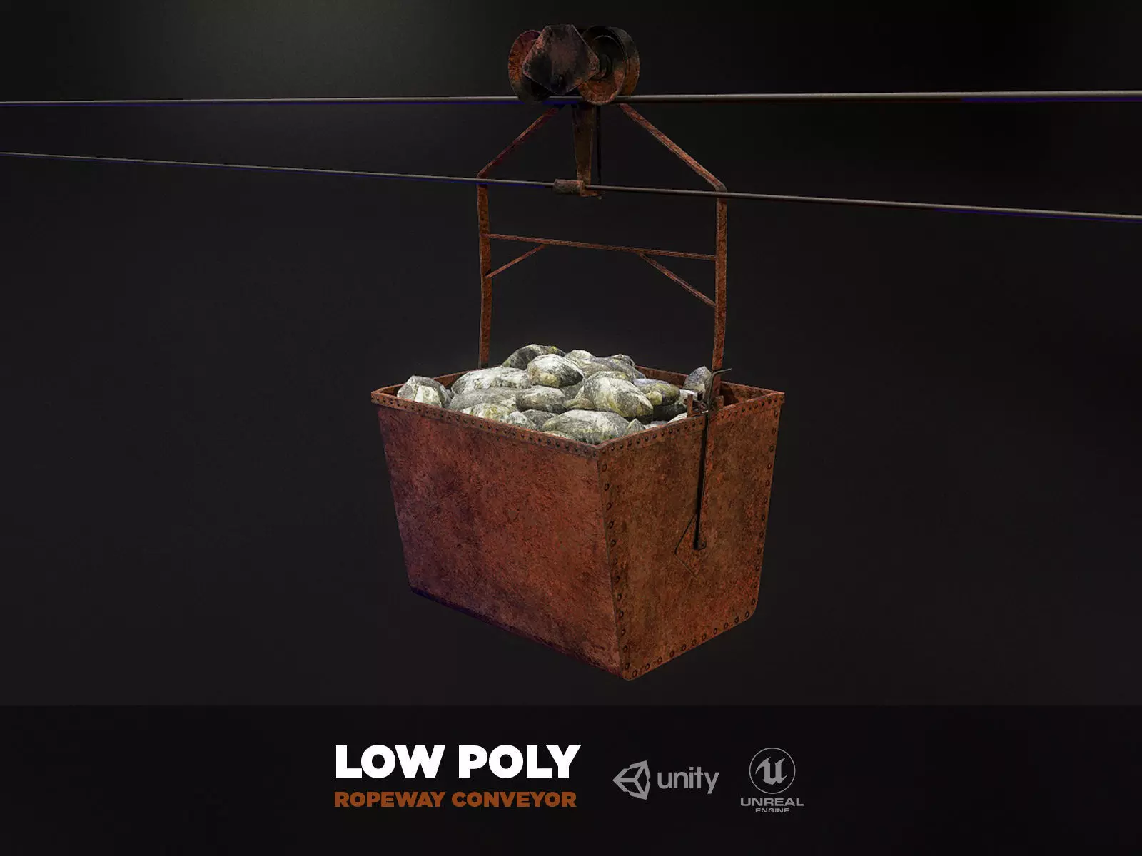 Mine historic ropeway conveyor - mine wagon Low-poly 3D model