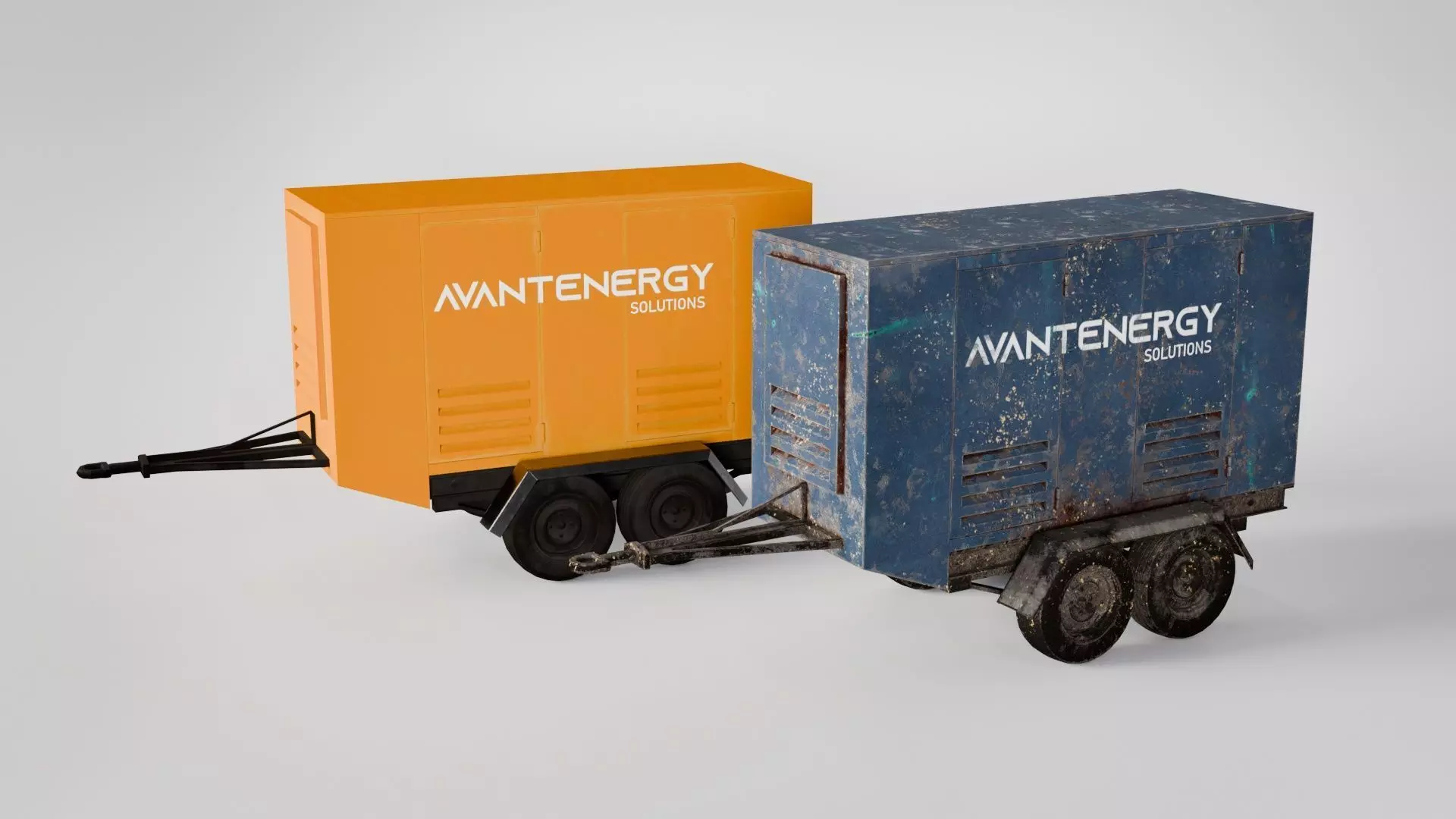 High-quality 3D model of a mobile generator mounted on a dual-axle trailer, designed for use in architectural visualization, industrial environments, construction scenes, and real-time applications. The asset is available in two visual variants – a brand-new clean version and a realistically worn version, allowing you to easily match the asset to different environments and storytelling contexts.
