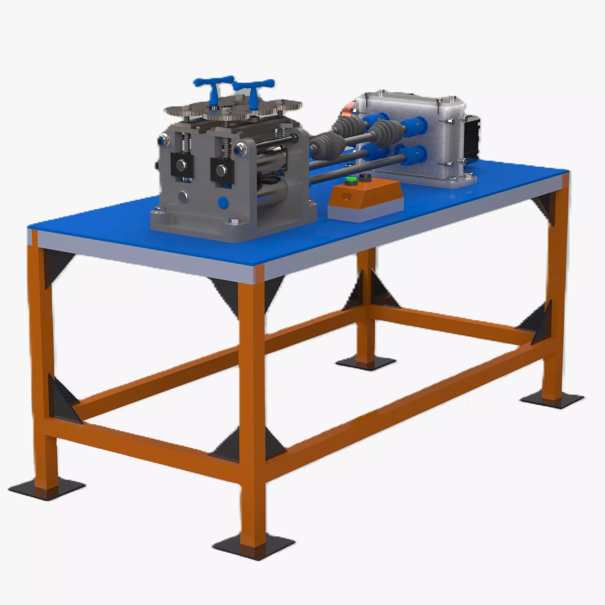 High-detail mechanical components: gears, couplings, support frame