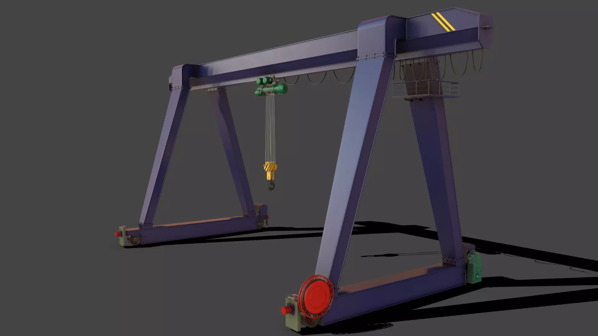 PBR Single Girder Gantry Crane V1 - BLUE DARK Low-poly 3D model