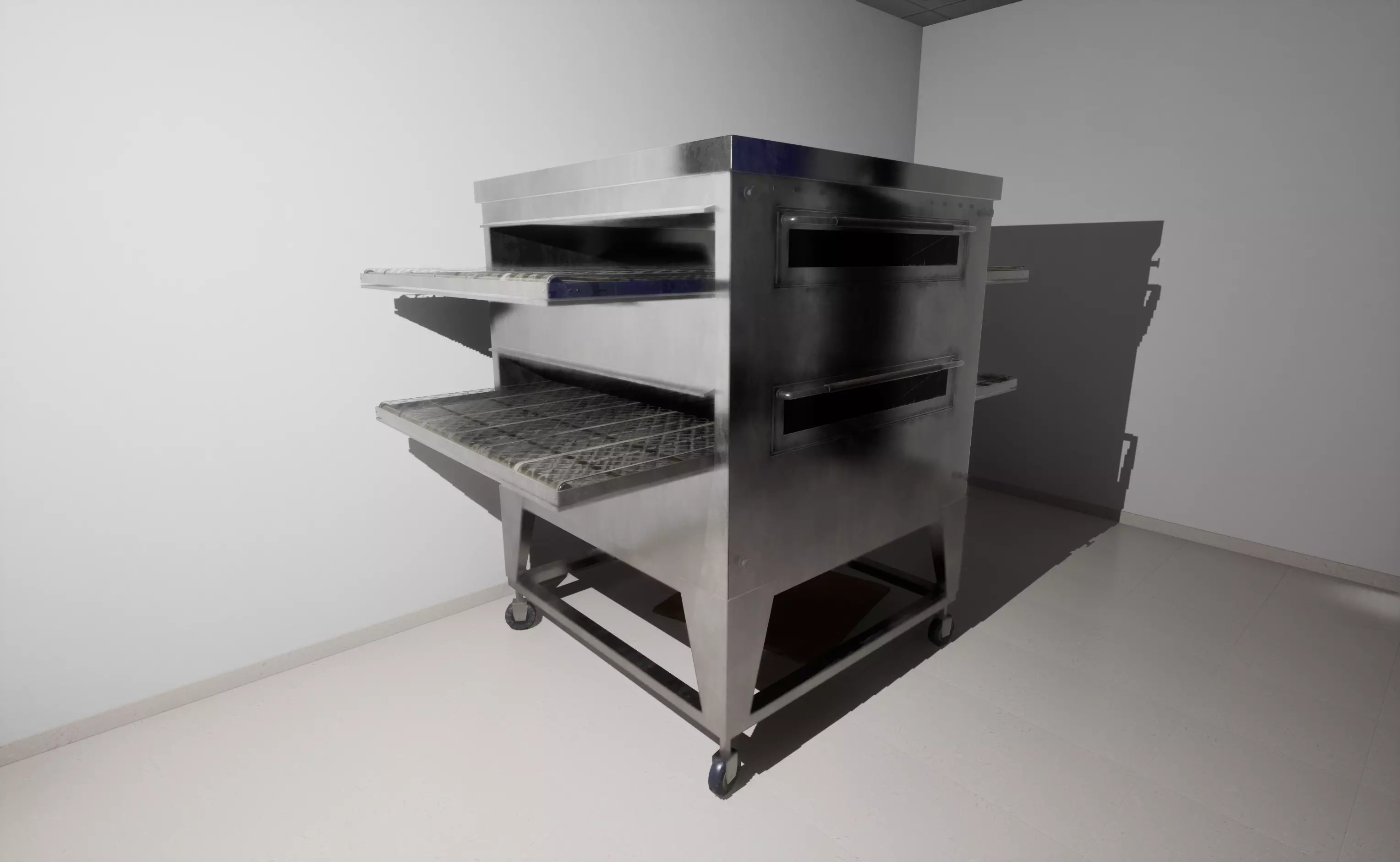 Model contains the oven and the convoyer belt as separate meshesEach Contains texture sets (PBR)