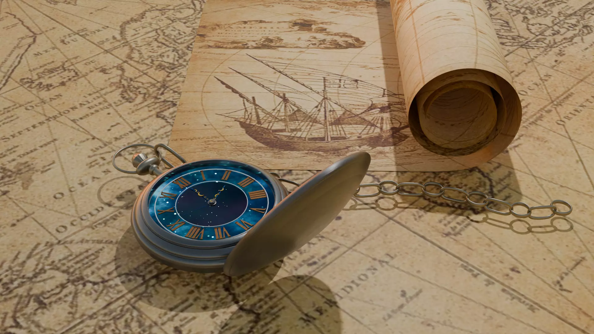 Antique Pocket Watch with Nautical Map – High-Quality 3D Model