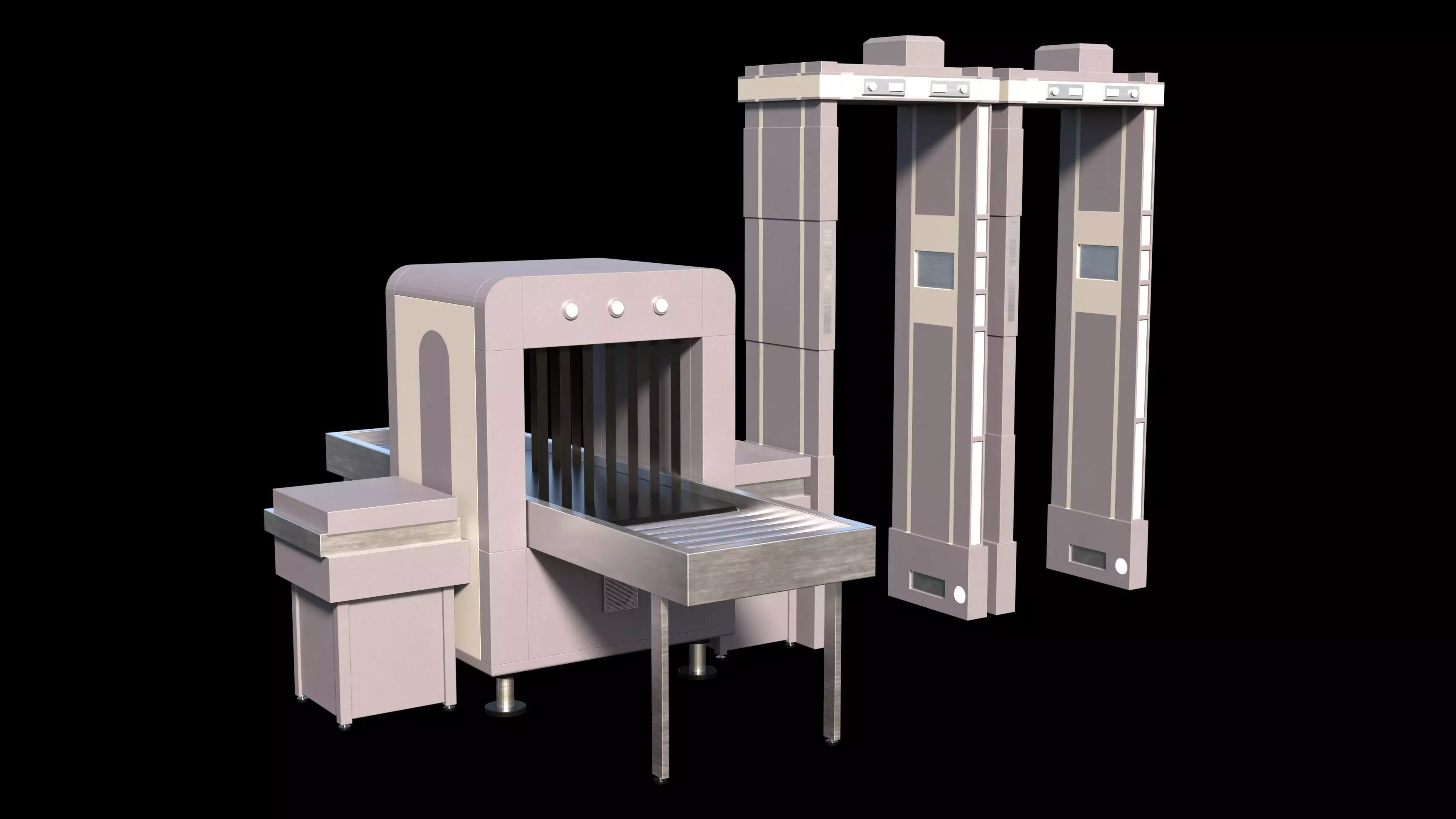 Low-poly security checkpoint model including an x-ray scanner and a walk-through metal detector.Ideal for airport, government building, or military simulation scenes.Clean topology, no textures or materials included – ready for custom shading or baking.Suitable for real-time use (games, VR, AR, architectural visualization).