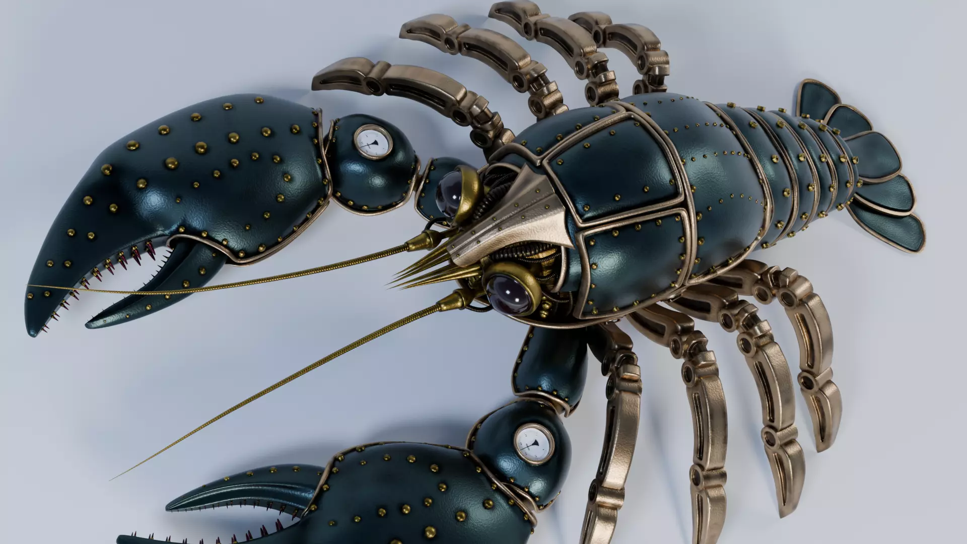 This is a highly detailed 3D model of a steampunk mechanical lobster.The design features brass plating, articulated joints, exposed gears, and gauge‑like details that blend industrial machinery with organic crustacean anatomy.Perfect for use in concept art, illustration reference, animation, and game development.A unique prop that adds a strong visual impact to any steampunk, sci‑fi, or fantasy environment.