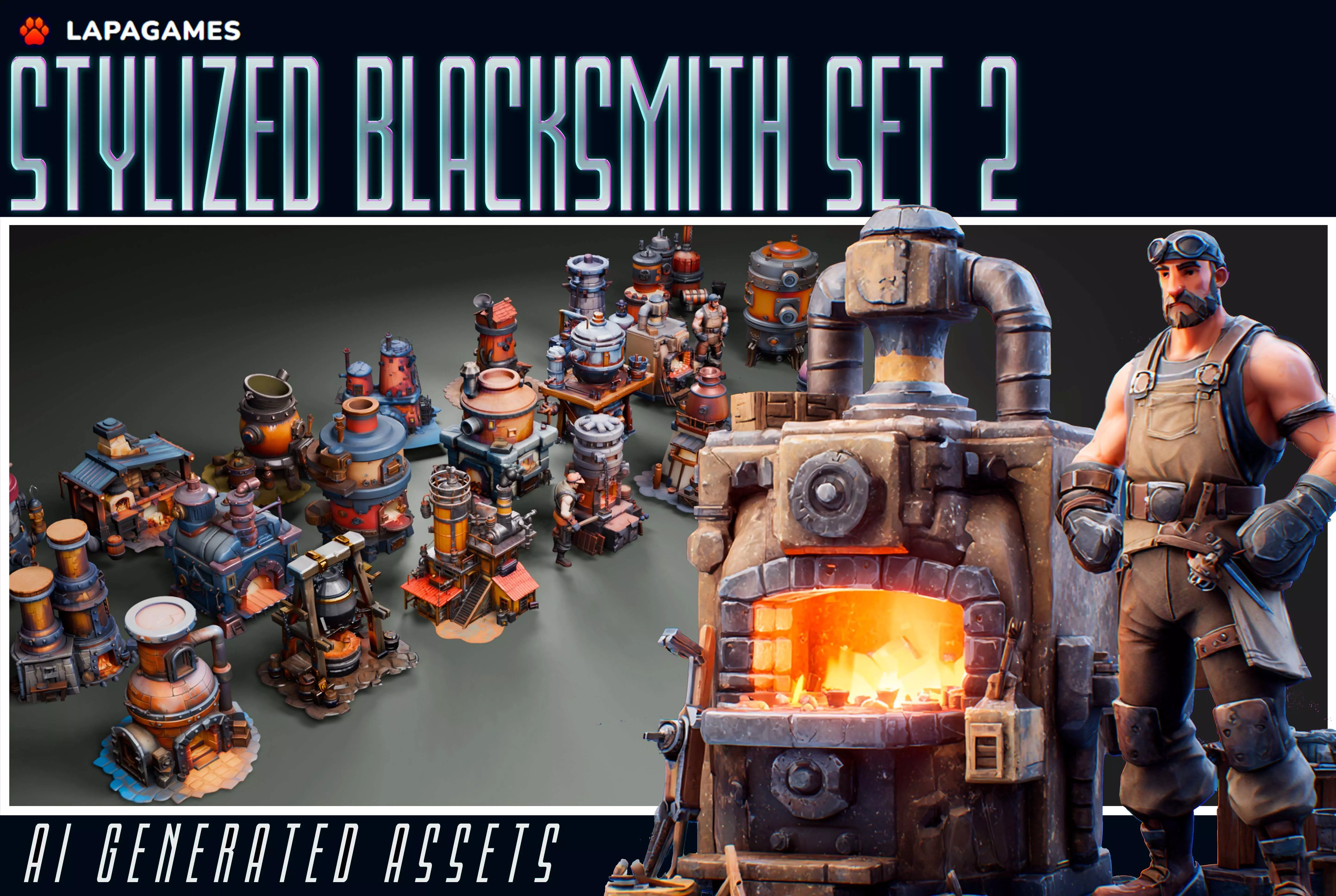 Bring your environments to life with Stylized Blacksmith Set 2 — a collection of AI-assisted, hand-polished stylized forges, furnaces, crafting stations, and workshop props.