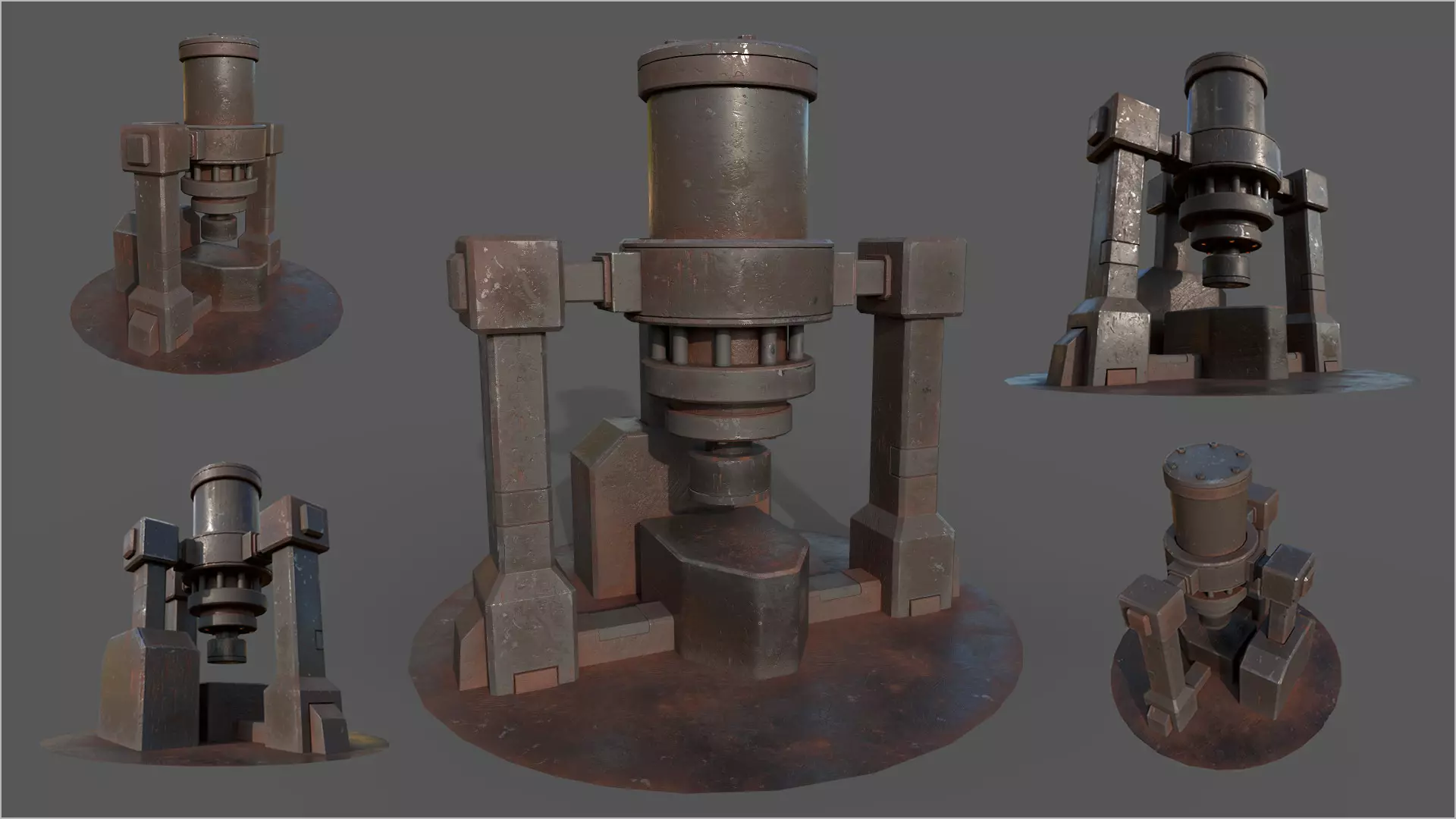 Stylized Industrial Forge Press model made in 3ds Max 2022 and textured in Substance Painter. No plugins/addons were used, weighted normals modifier is applied