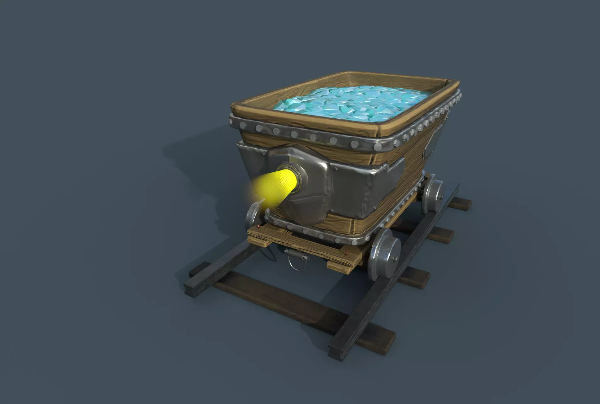 Stylized Mine cart, baked detail from highpoly. Also includes 90 degree rail.