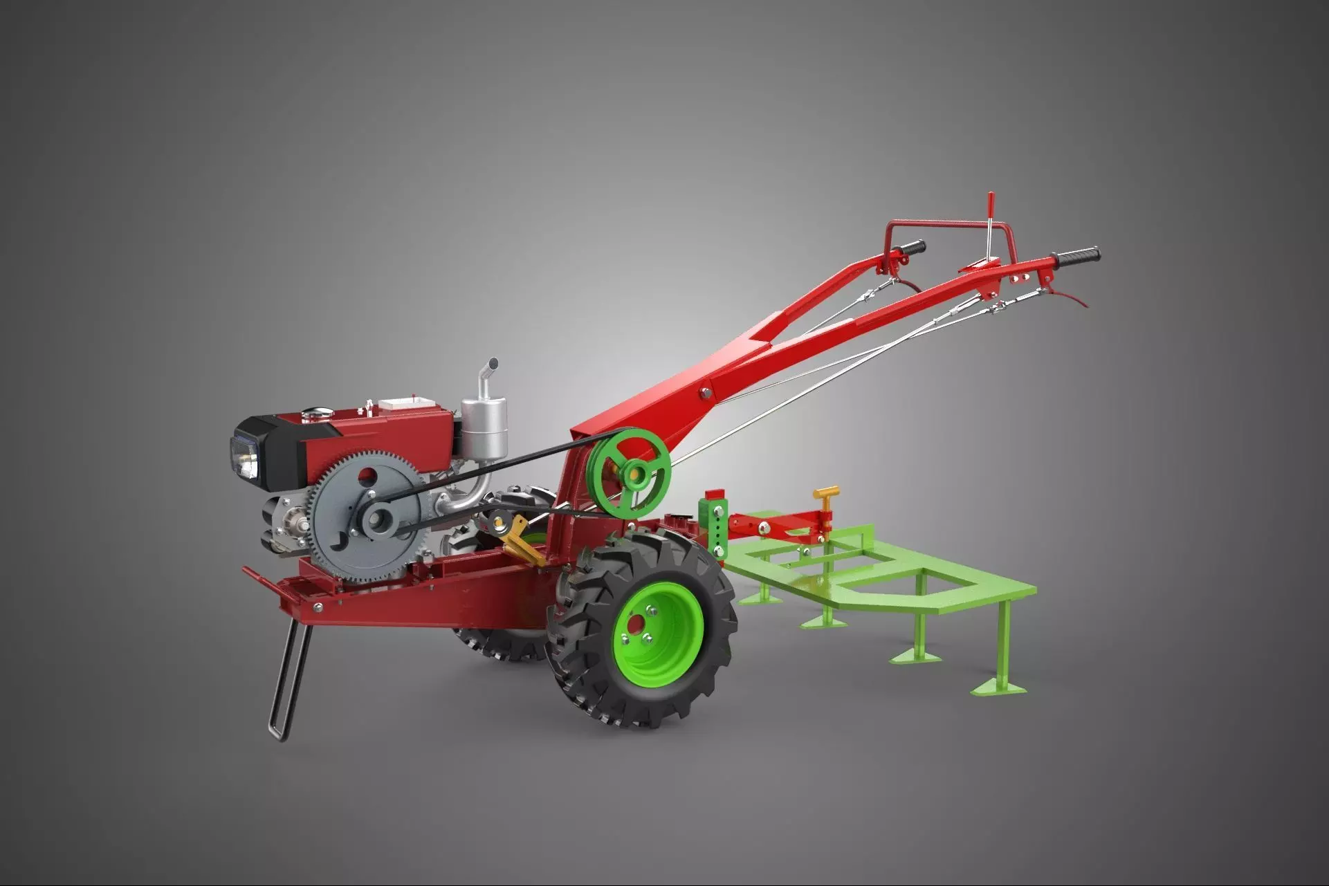 The hand tractor (or power tiller) is a compact, pedestrian-operated machine utilizing low-horsepower engines suitable for small-scale farming. In these machines, the most common form of soil engagement is the rotary tiller, which functions through a drum mounted with numerous specialized, curved blades or tines. These tines rapidly chop and mix the soil, providing simultaneous primary and secondary tillage suitable for intensive cultivation in restricted plots. The geometry of these rotary teeth must be carefully calibrated to balance efficient soil breakup against machine stability and operator effort.