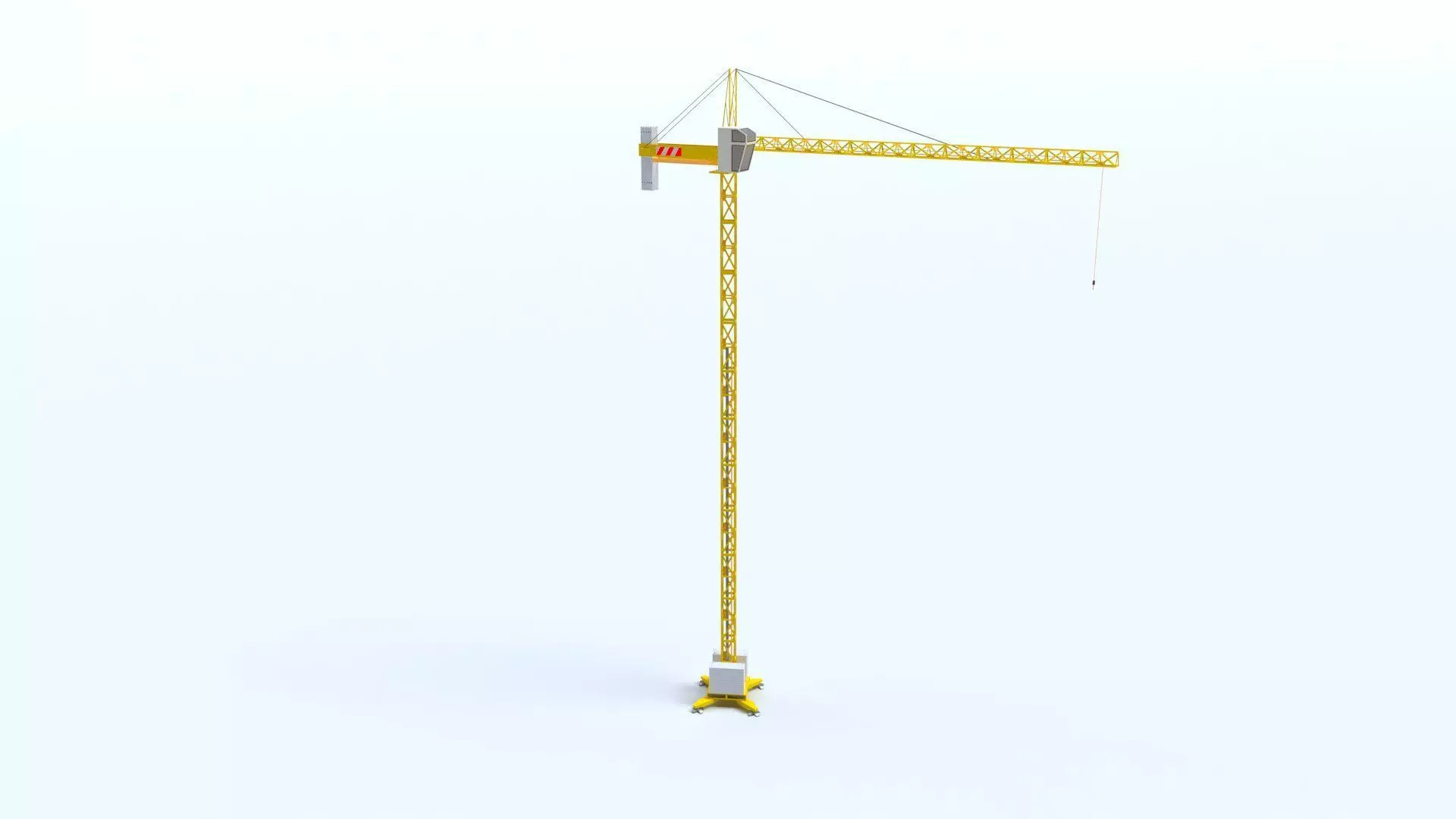 A 3D model of a tower crane - a type of machine, equipped with a hoist rope, wire ropes or chains, and sheaves, that can be used both to lift and lower materials and to move them horizontally. It is mainly used for lifting heavy objects and transporting them to other places.