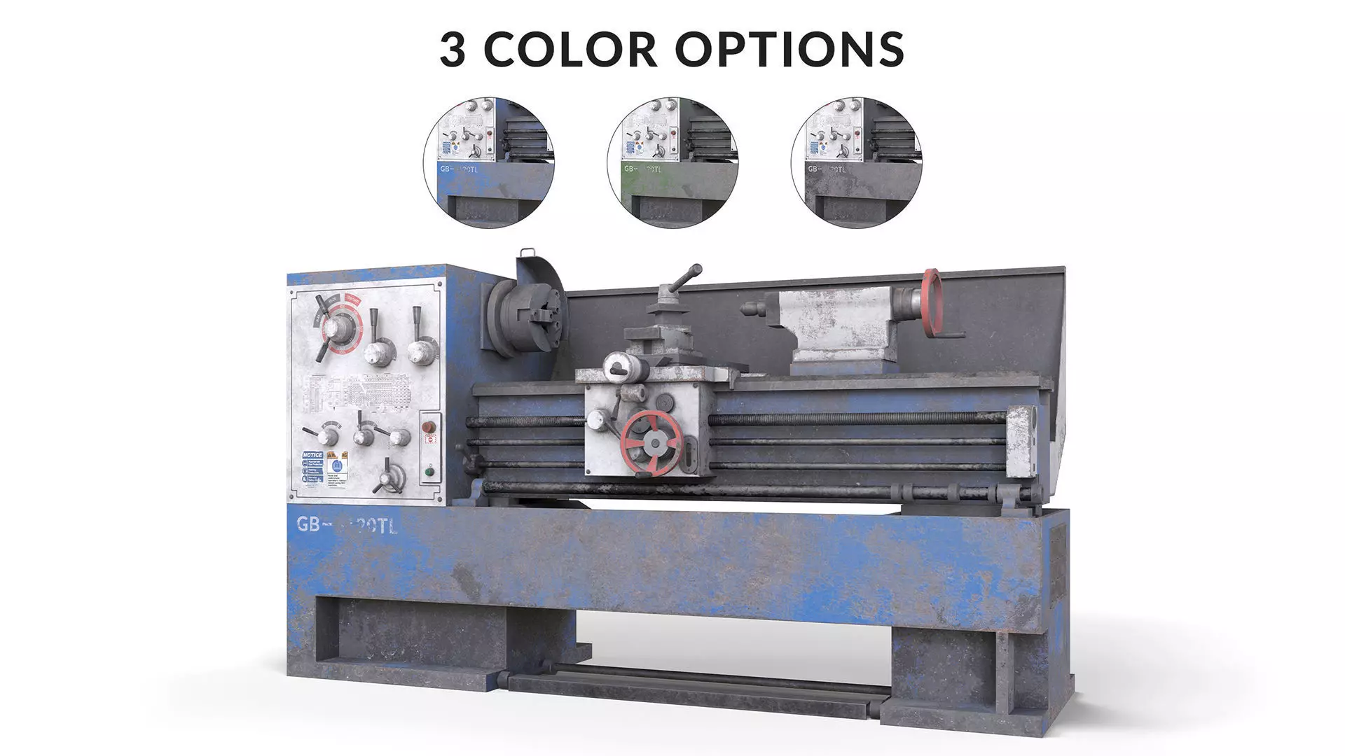 3D Model of Old turning lathe with 3 textures sets - blue, green, grey