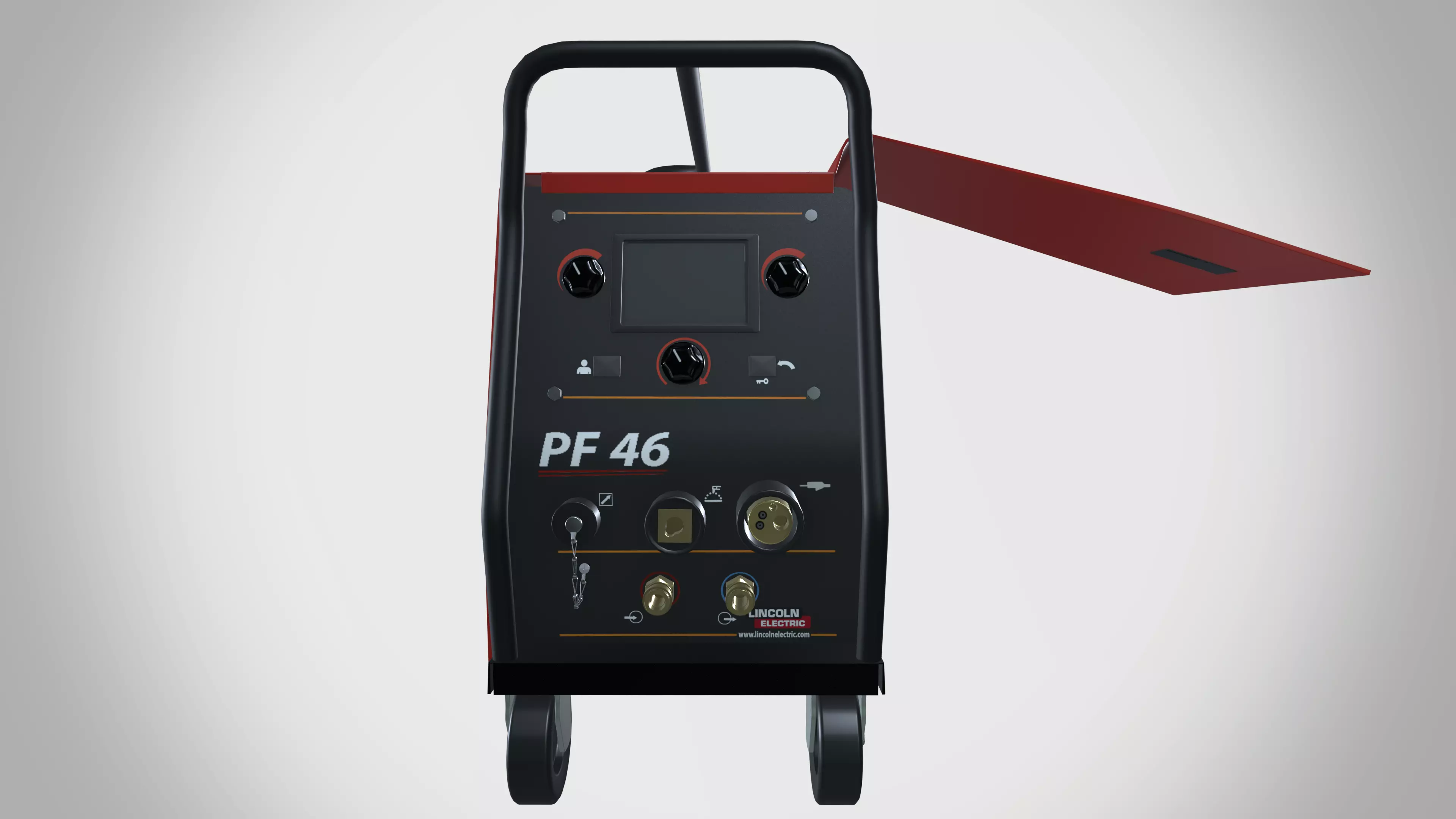 • The black handle allows for comfortable and secure grip, enhancing the overall usability of the cart when moving the welding machine from one location to another.