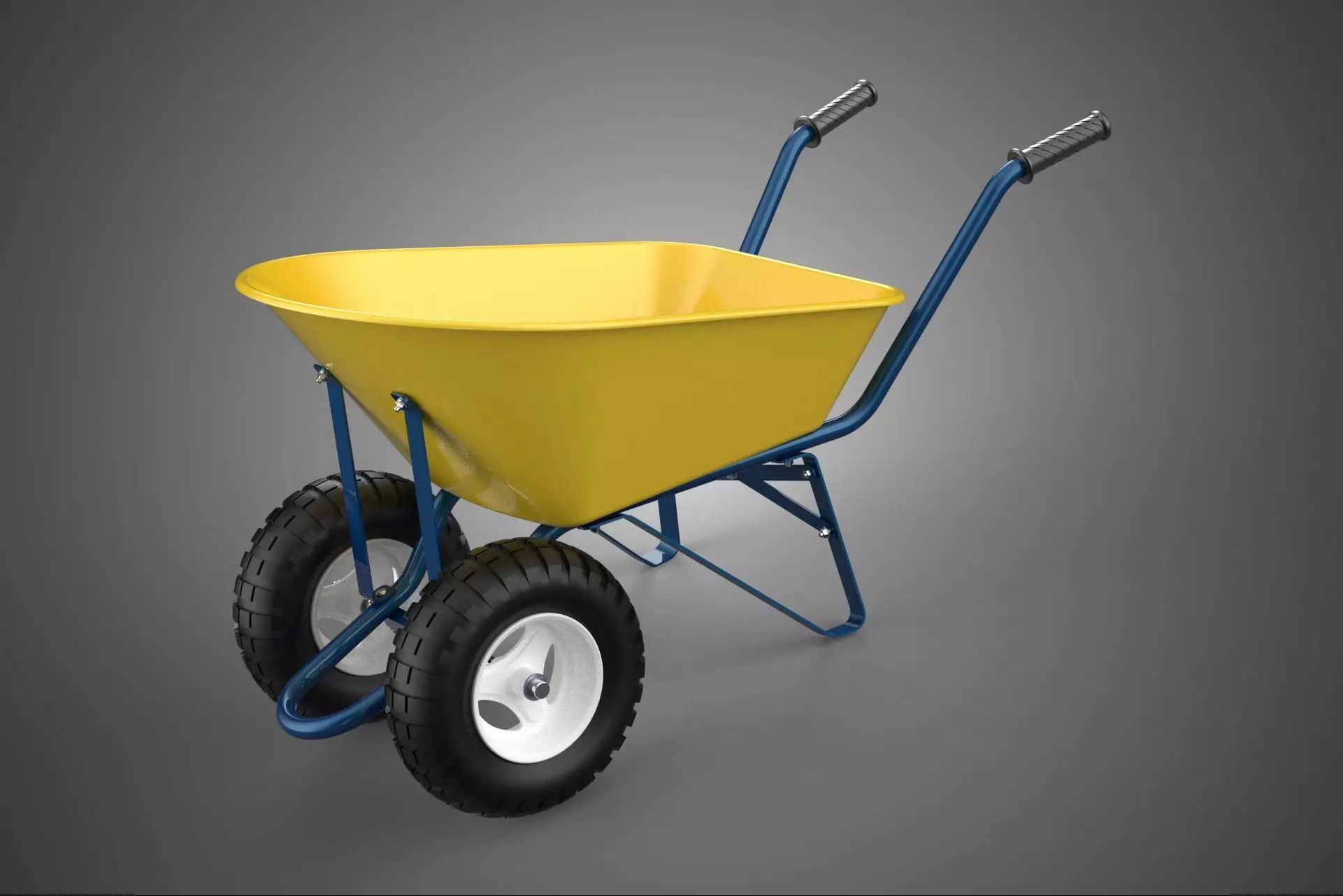 Compared to the traditional single-wheel wheelbarrow (which prioritizes maneuverability and tight turning radius), the two-wheeled model sacrifices minor agility in favor of superior stability and load management. The primary ergonomic advantage lies in the reduced vertical lifting force required by the operator, as the dual axle bears the majority of the static load weight. Operation typically involves grasping the dual handles, tilting the frame forward onto the wheels, and pushing. Dumping is achieved by lifting the handles sharply and pivoting the load basin forward.