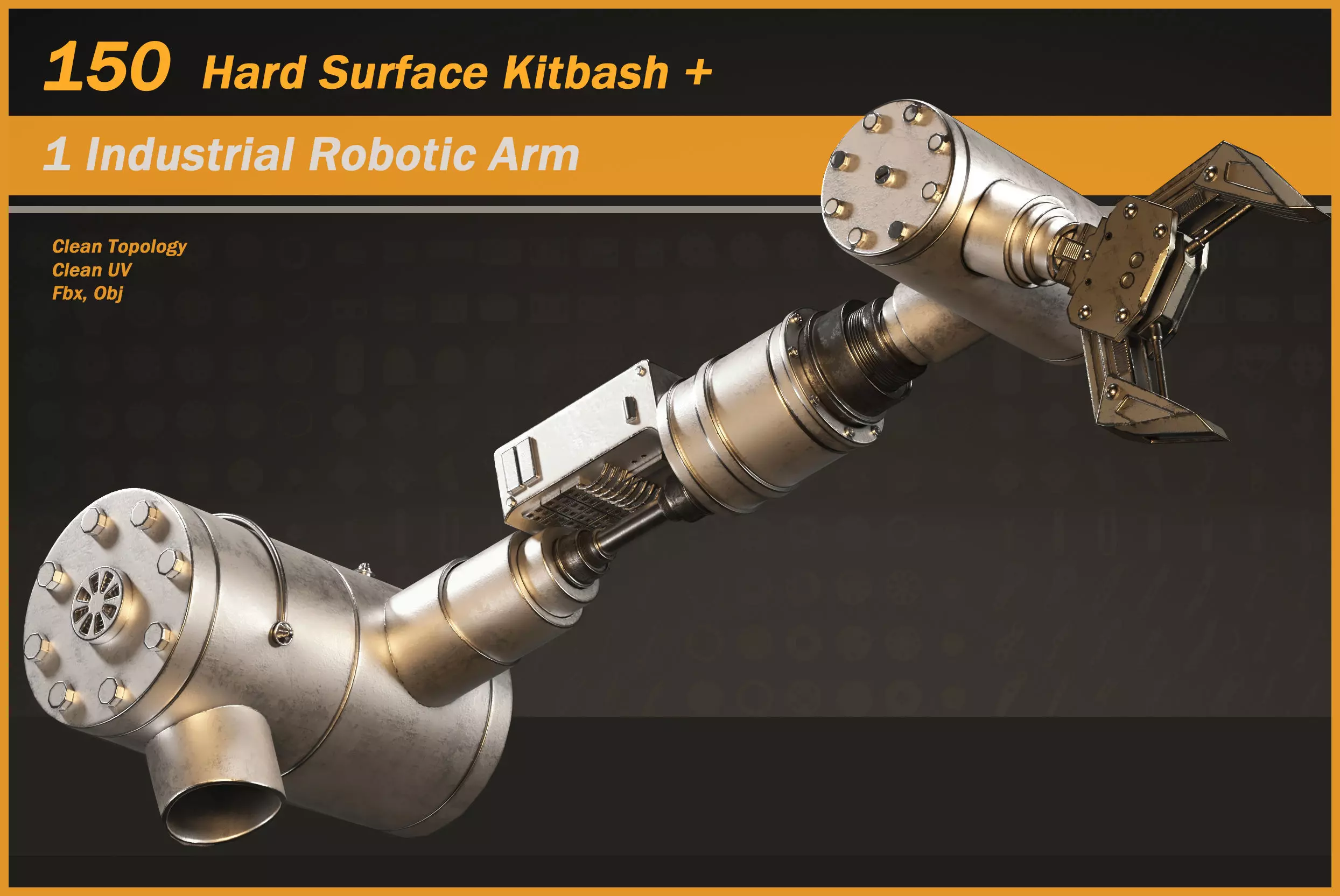 150 Hard Surface Kitbash + 1 Industrial Robotic ArmThe Rar file include 3 folders: